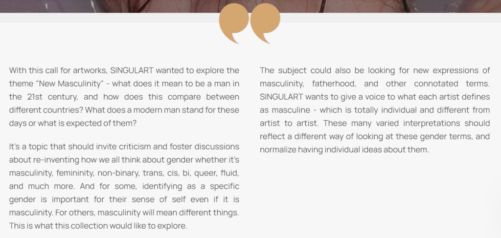 Happy Easter everyone! I’m happy that my painting “Machismo” was chosen by Singulart’s curators to be included in the New Masculinity collection. You can click on this link https://www.singulart.com/en/collection/new-masculinity-6049?campaign_id=1059&fbclid=IwAR0mLOgCCgUbUkgpx7QzZEAAV7BaNJe8BvixSRxRwxgICKziX9B_c3MlvDo to see the whole collection with paintings and read the description about the topic.