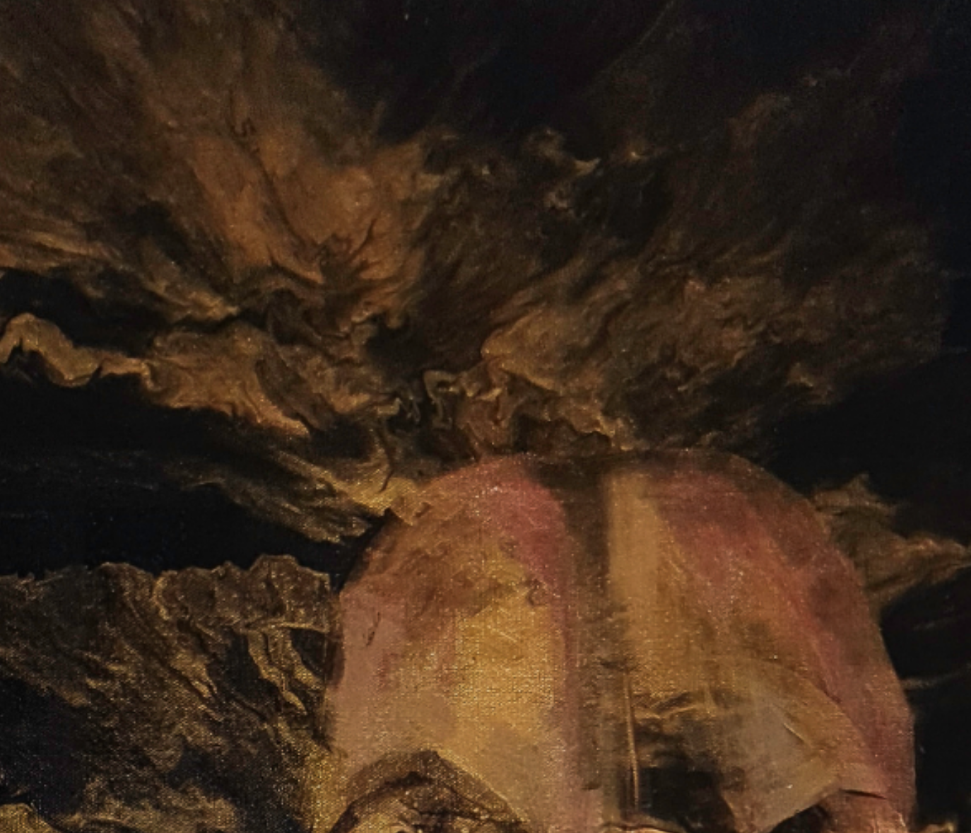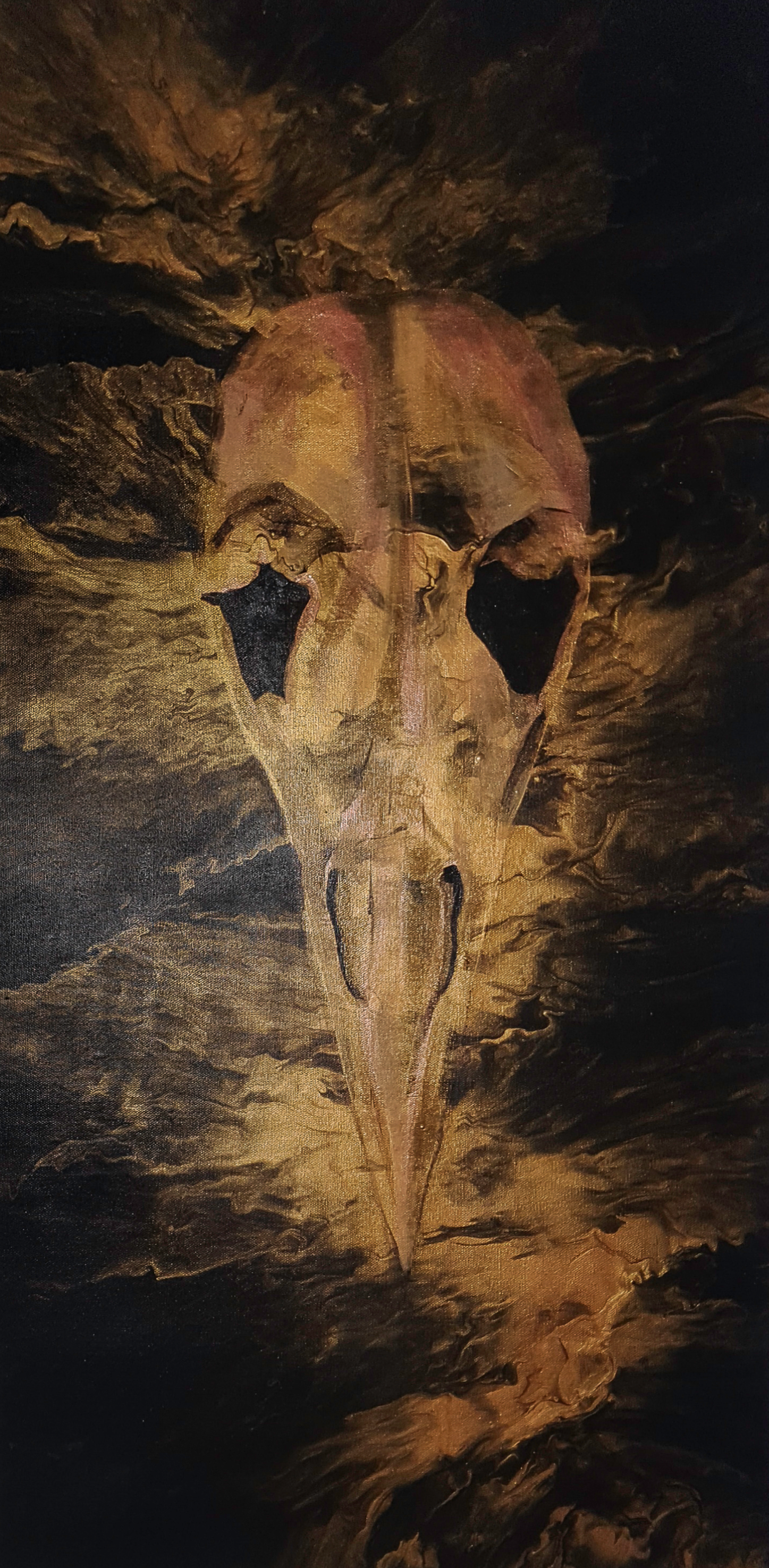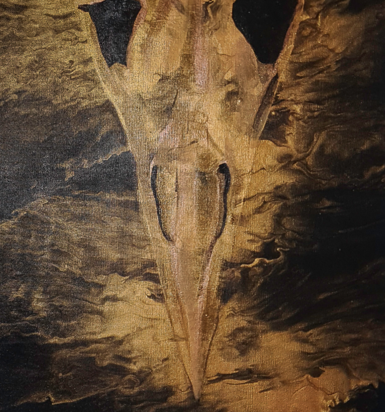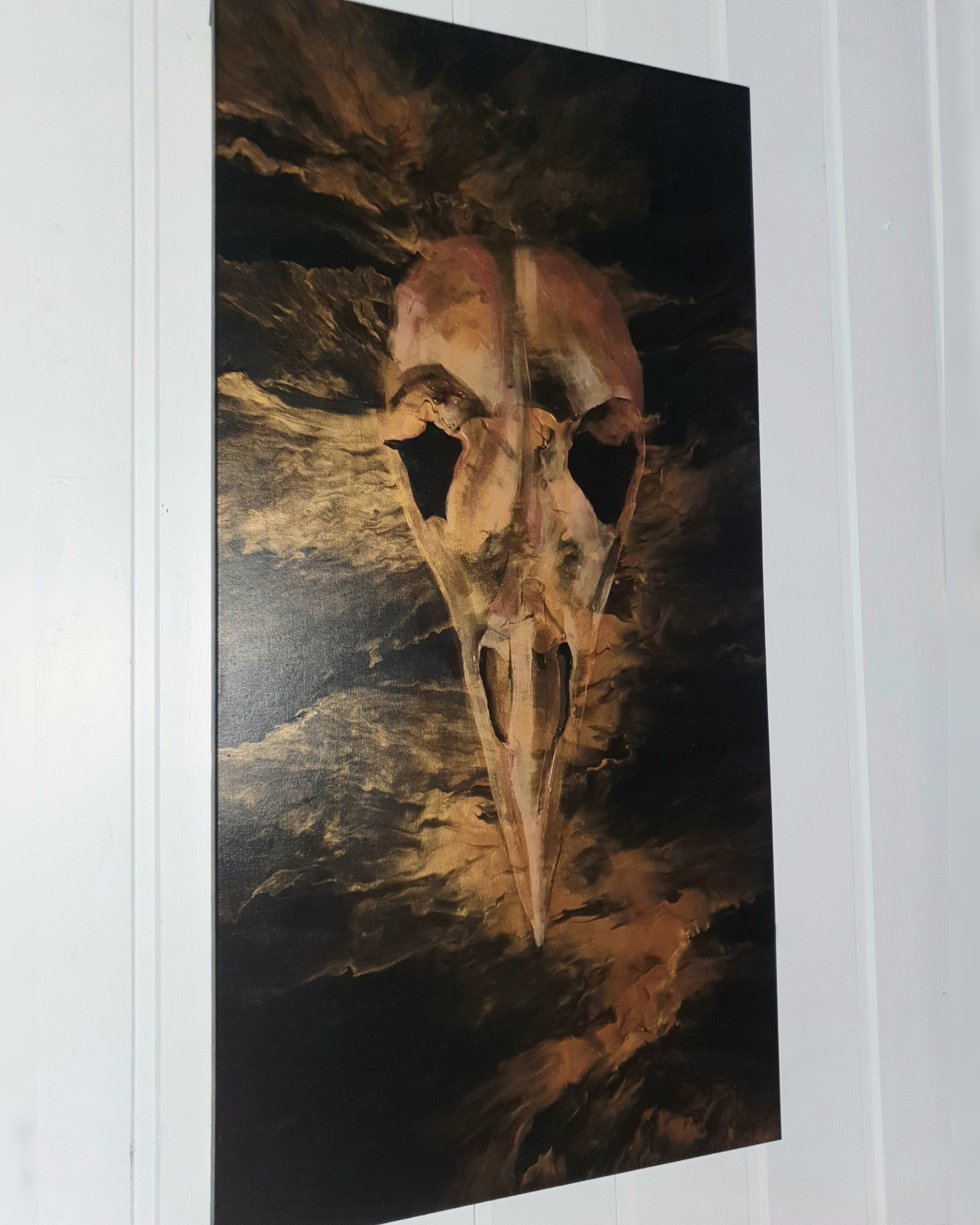 This artwork is made with acrylics and shimmer on canvas.