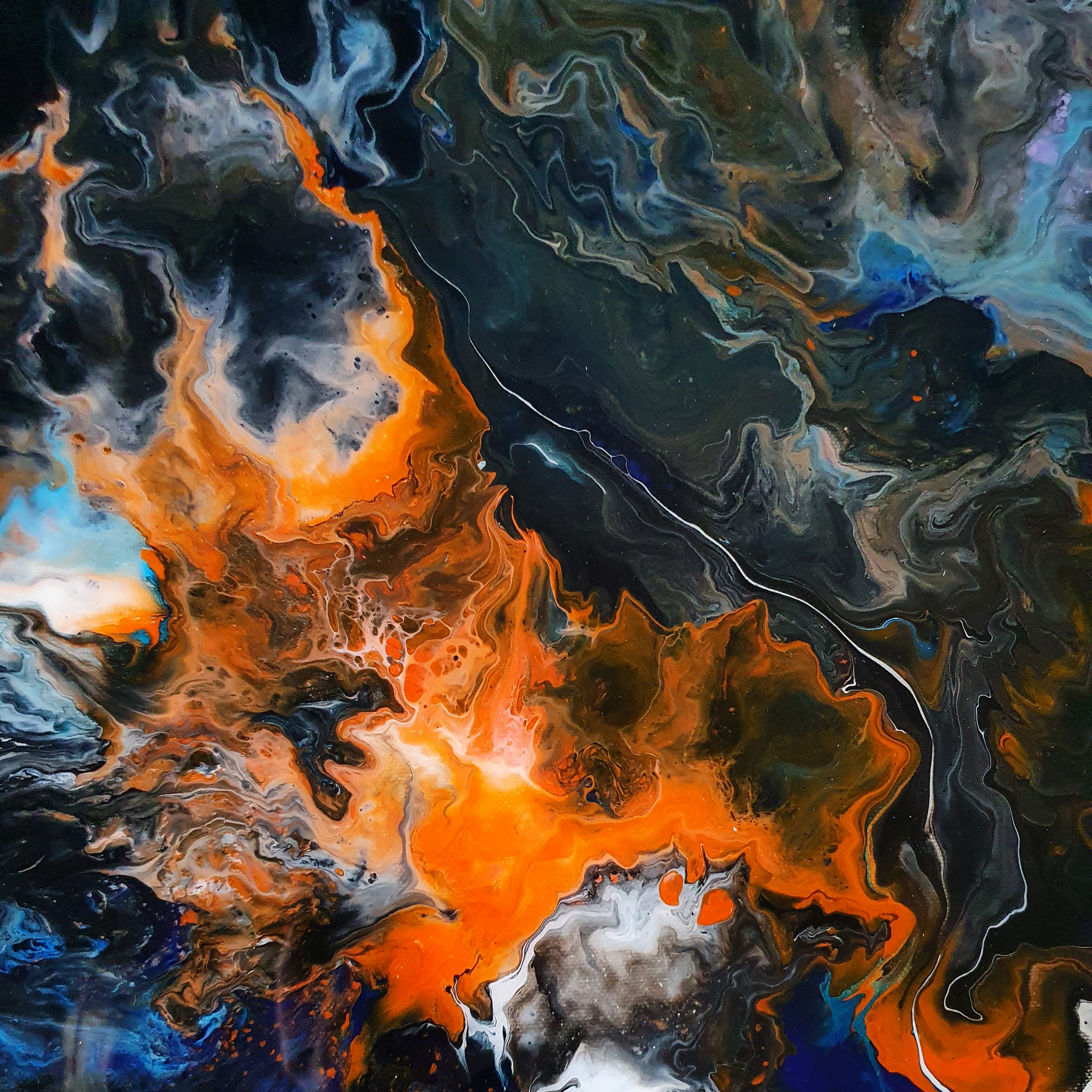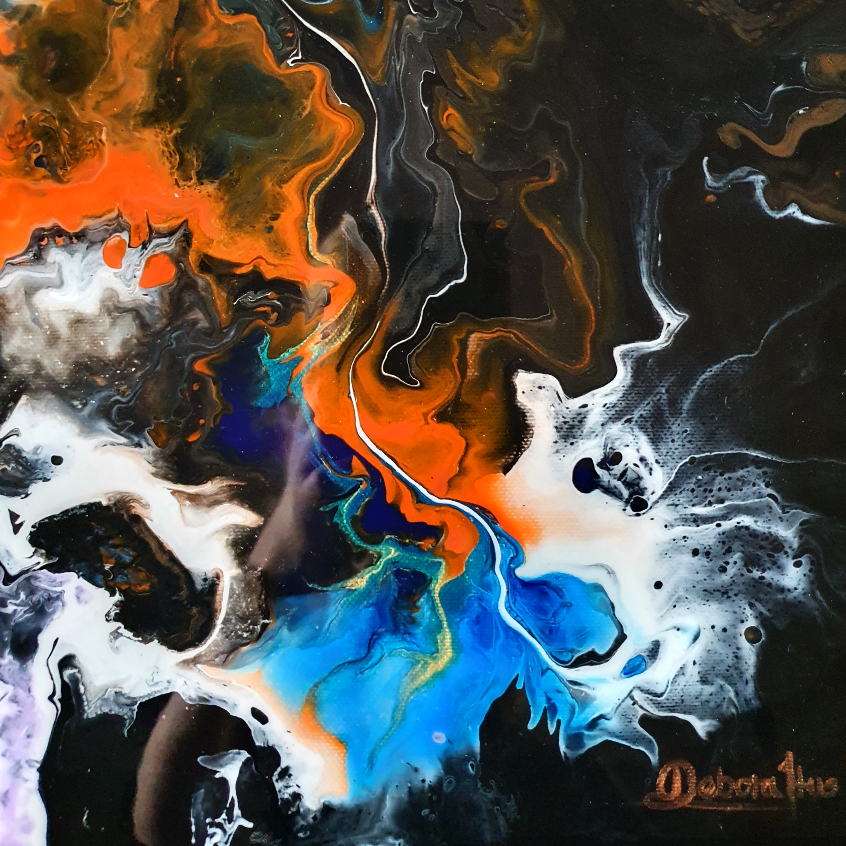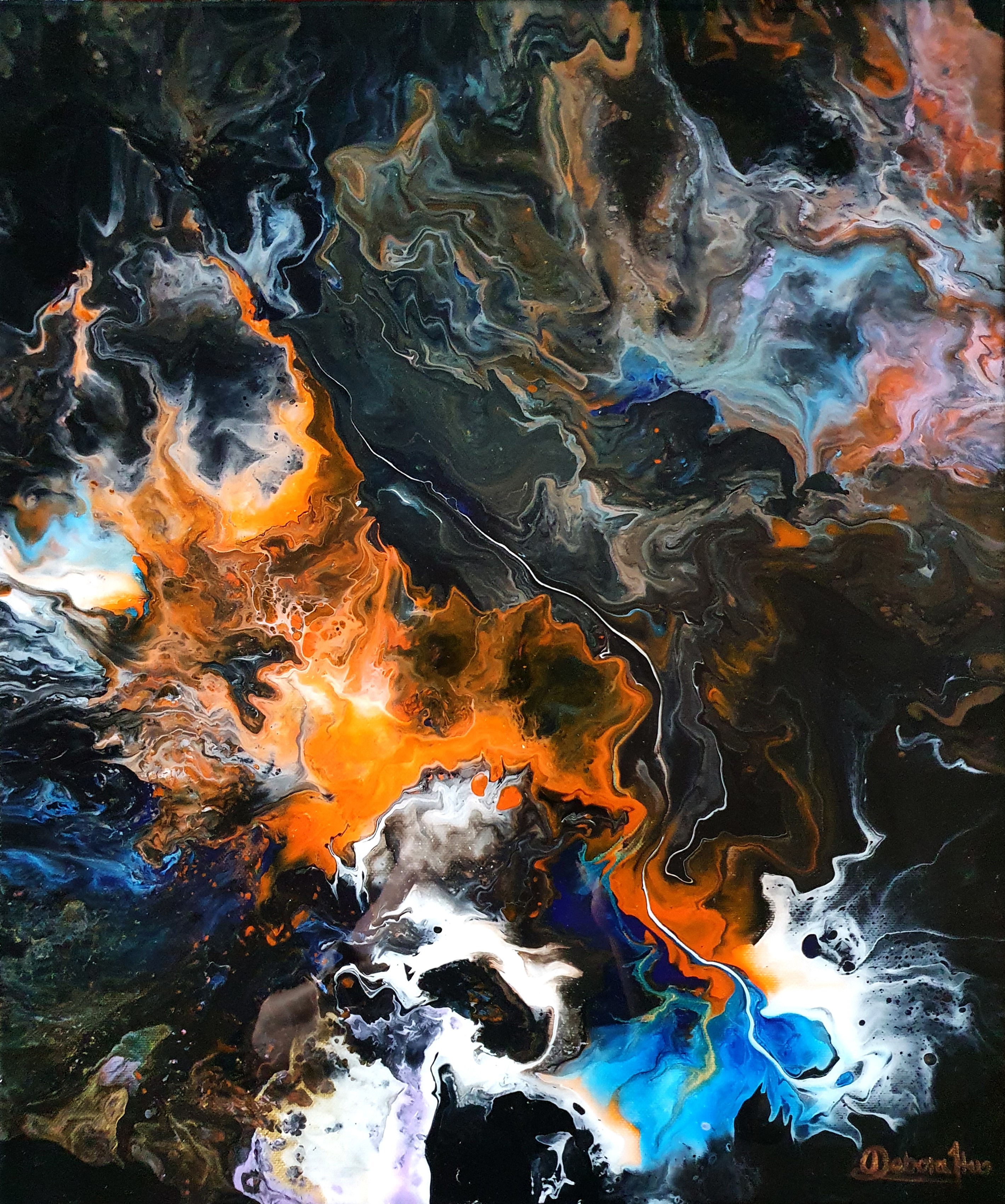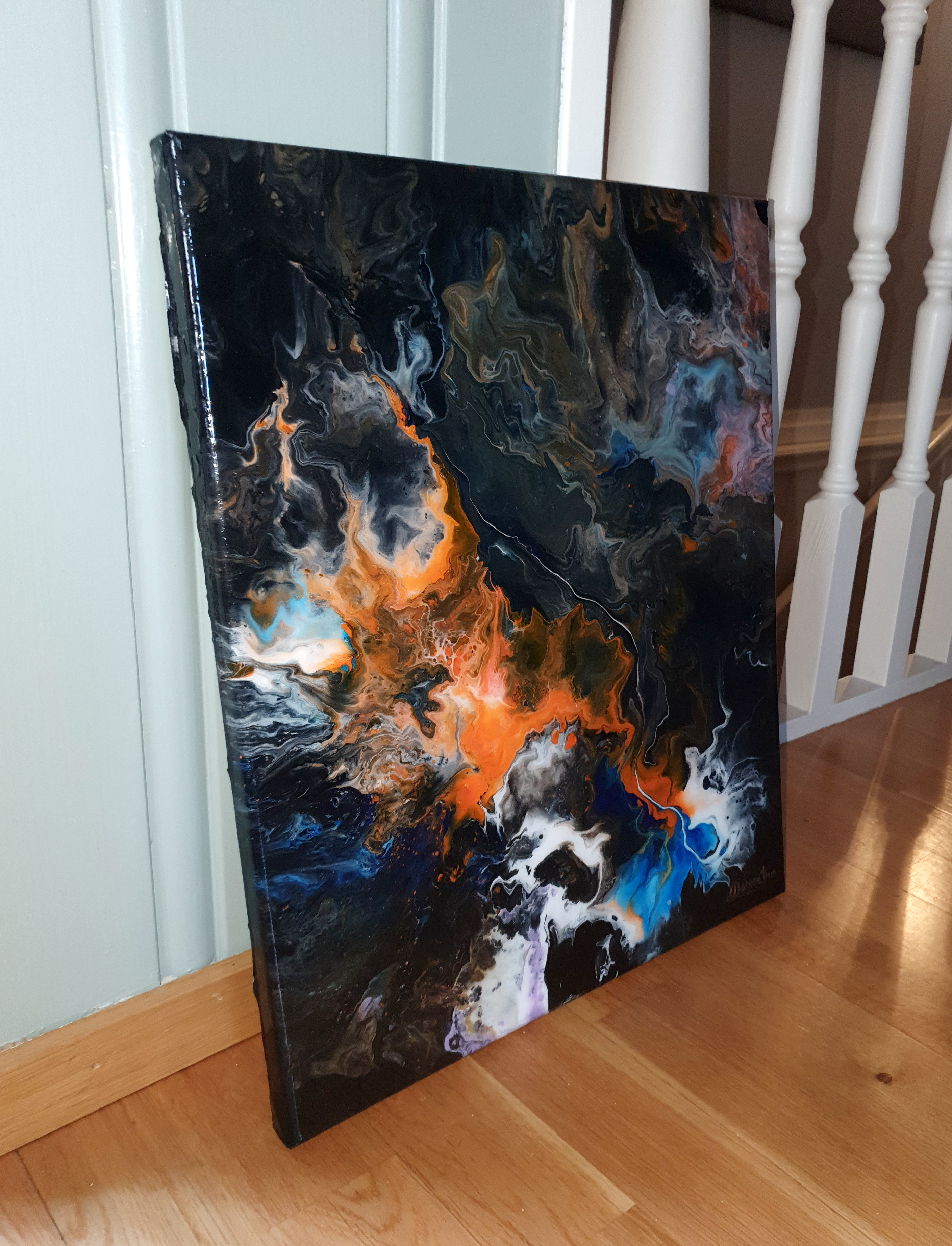 This artwork is made with acrylics and glitter/shimmer on canvas.