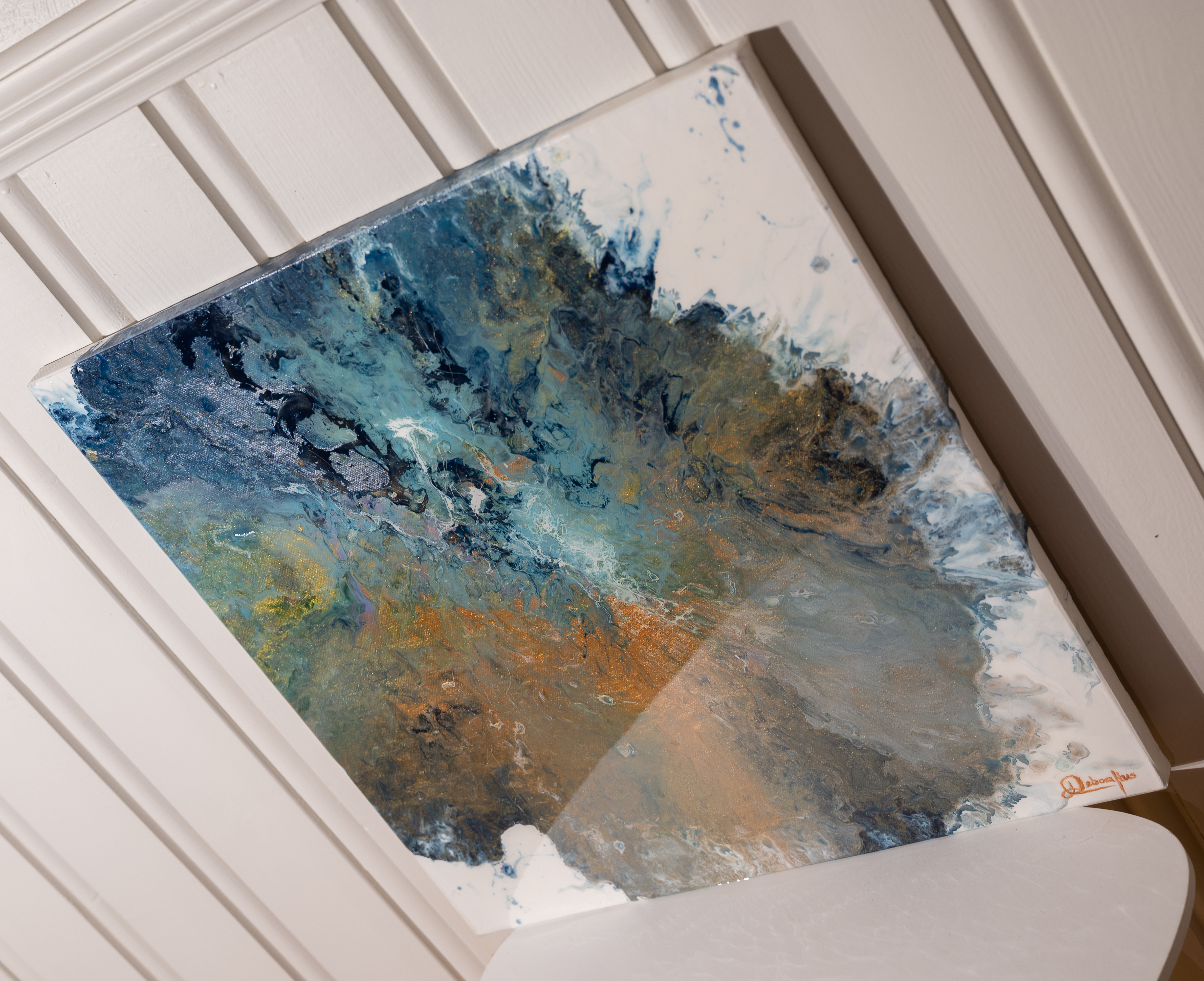 It has a layer of epoxy resin that has a similar effect to glass that gives a shiny effect.