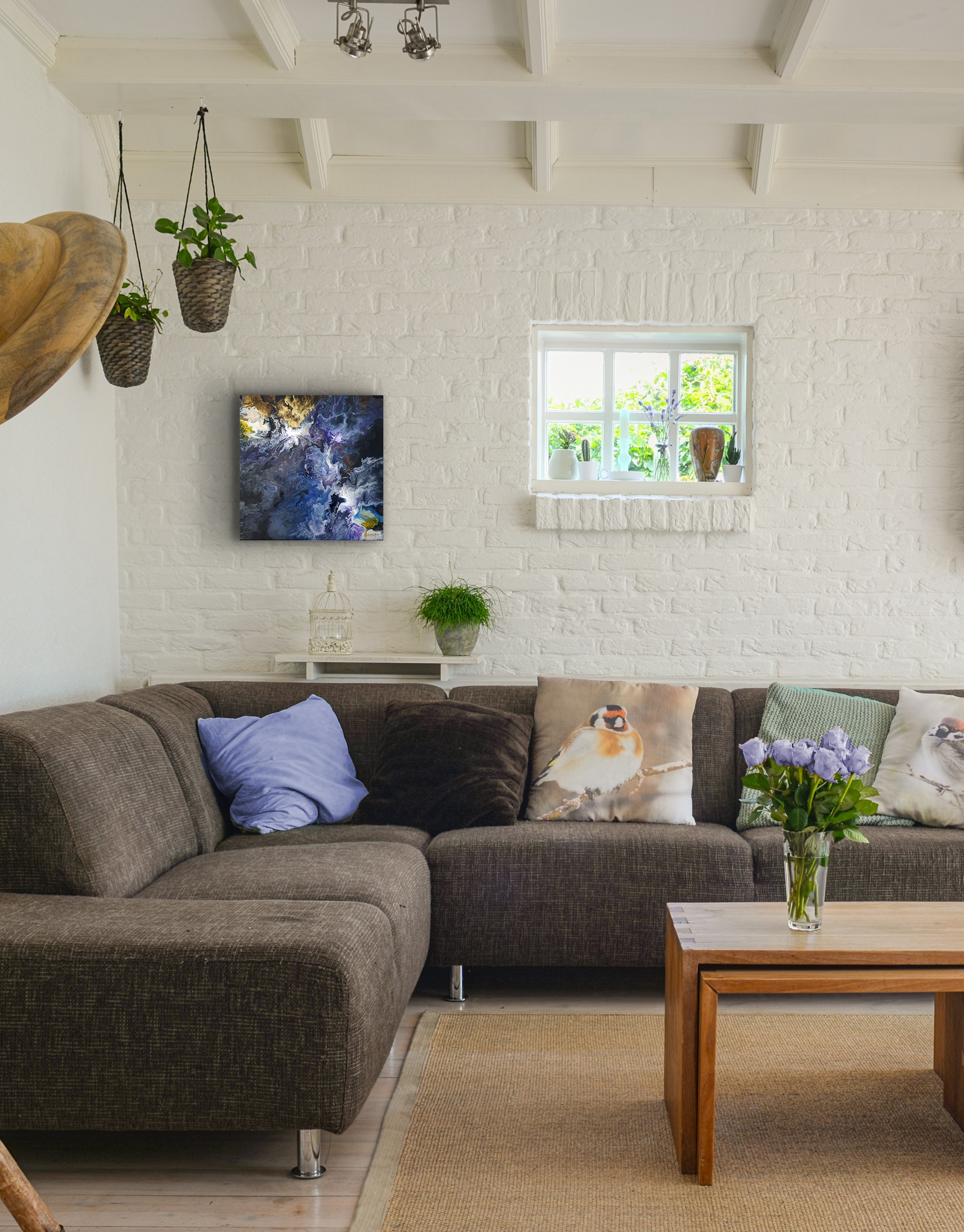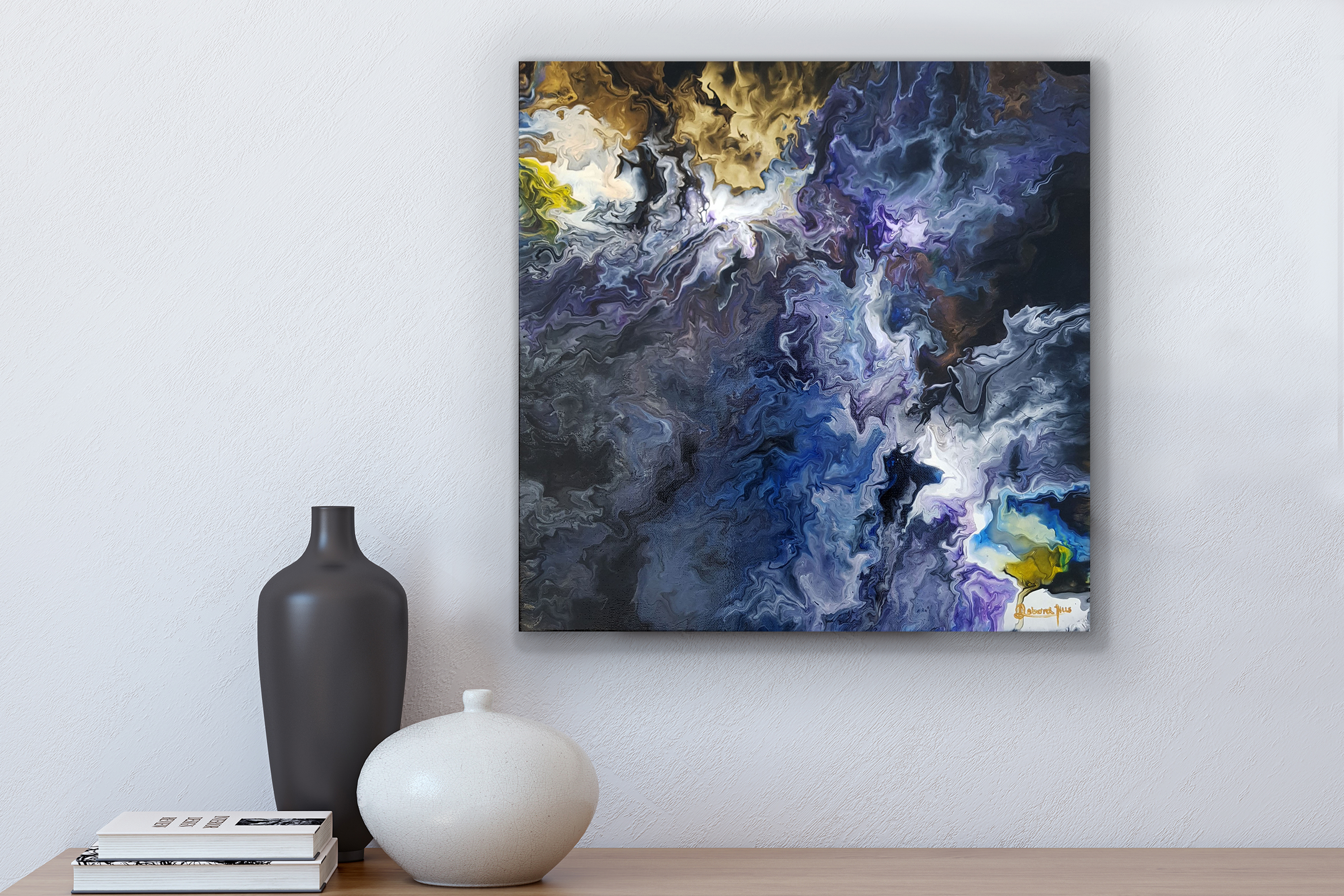 This artwork is made with acrylics on canvas.