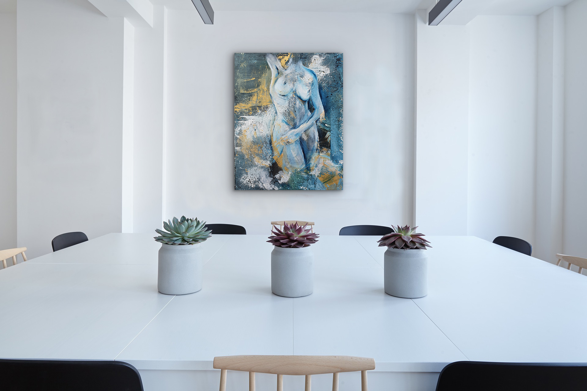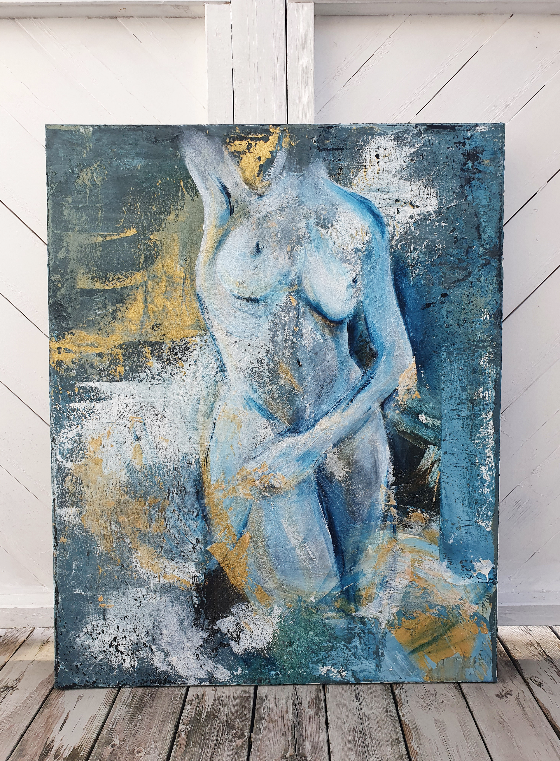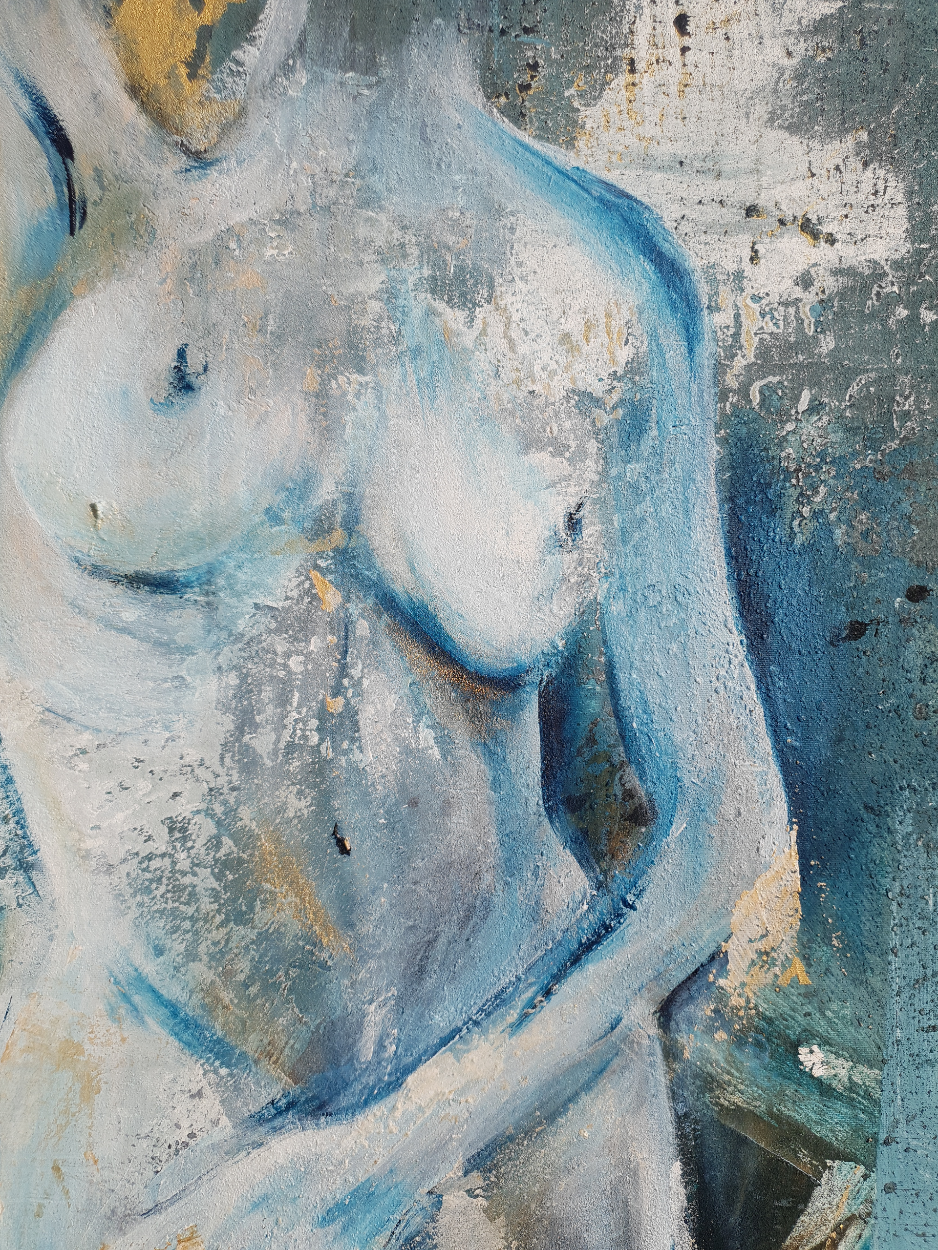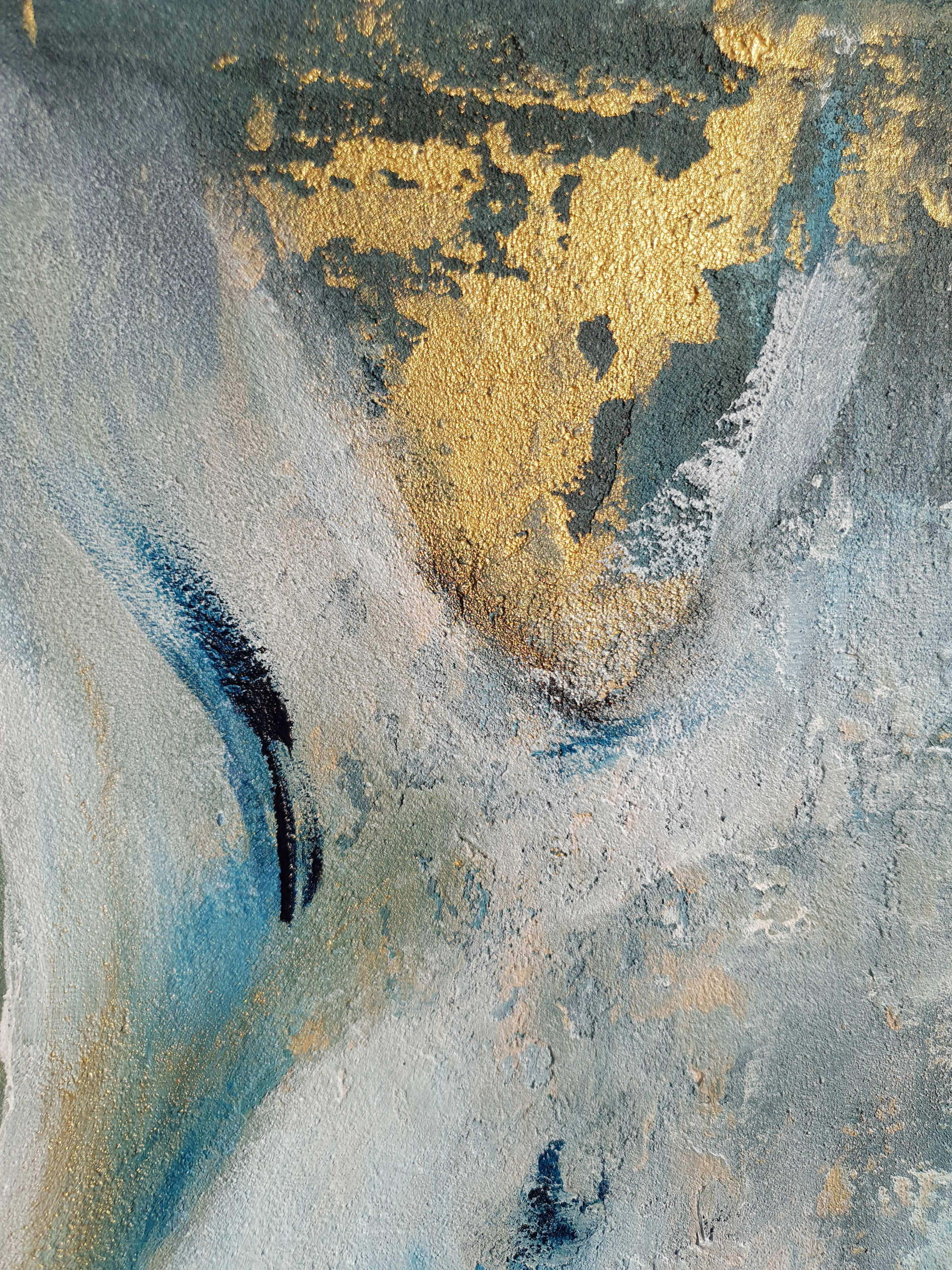 You can see a piece of nature incorporated into this picture. For this painting, I decided to add pigments I collected outside. It is quite inspiring to me to go outdoors to search for various organic elements I can utilize when painting. Anything from beach sand to woodland dirt to seashells can be used as materials. This work of art was created on canvas using a variety of media, including acrylic paint and pigments made from sand, shells and soil.