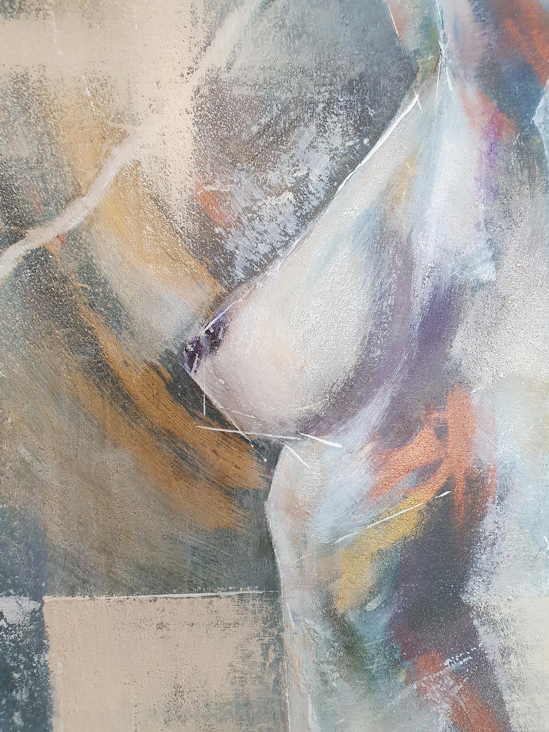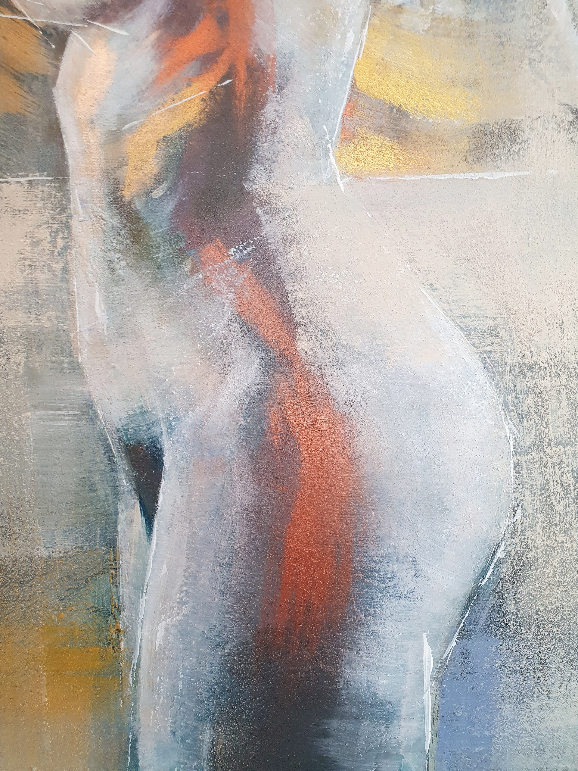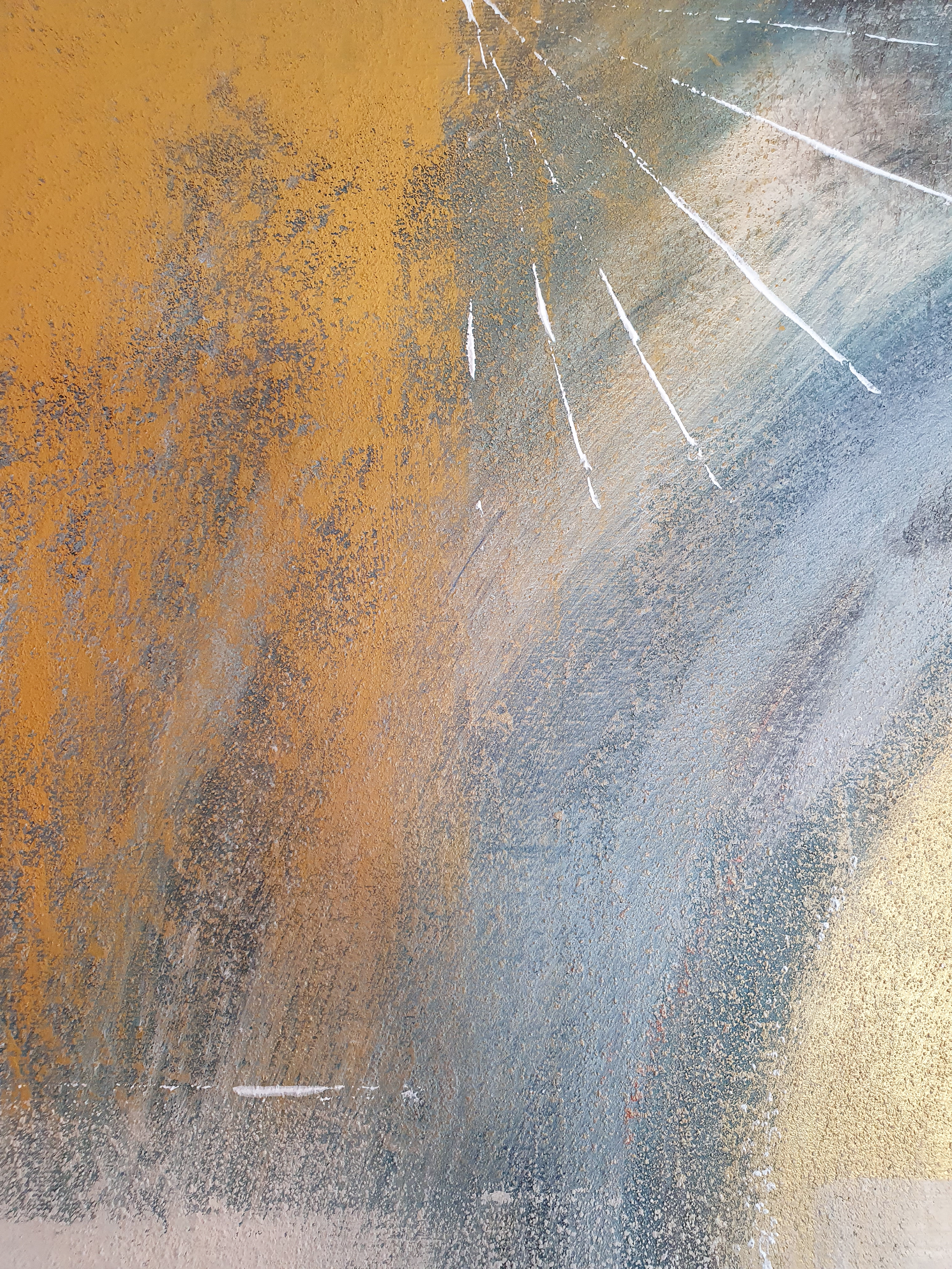 You can see a piece of nature incorporated into this picture. For this painting, I decided to add pigments I collected outside. It is quite inspiring to me to go outdoors to search for various organic elements I can utilize when painting. Anything from beach sand to woodland dirt to seashells can be used as materials. This work of art was created on canvas using a variety of media, including acrylic paint and pigments made from sand, shells and soil.