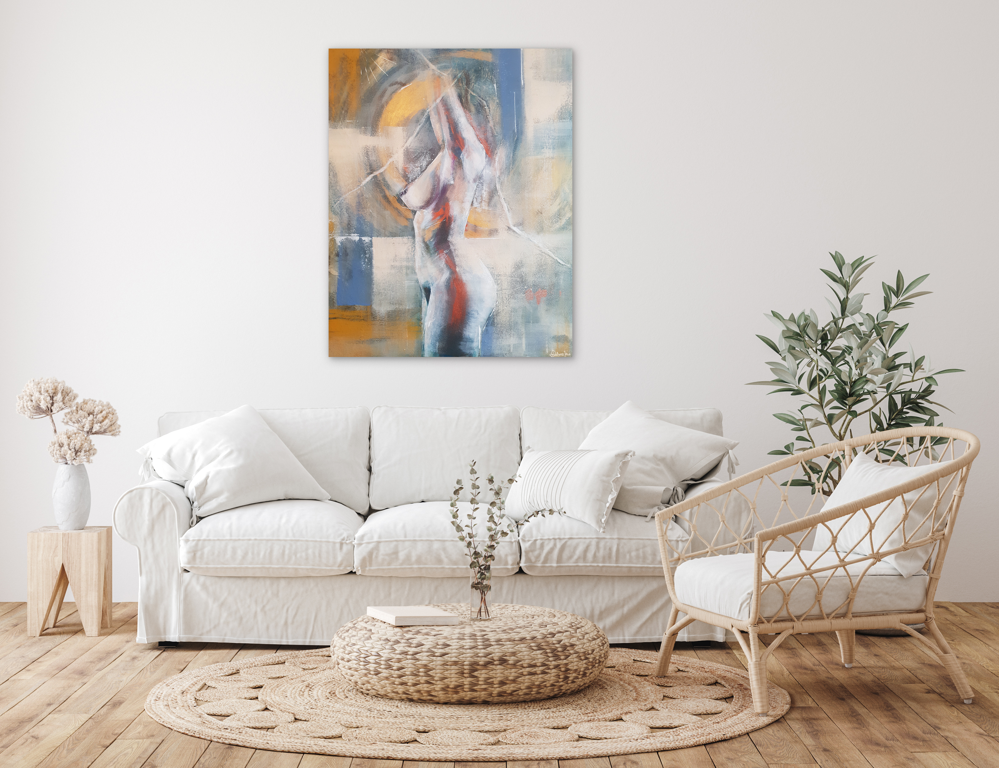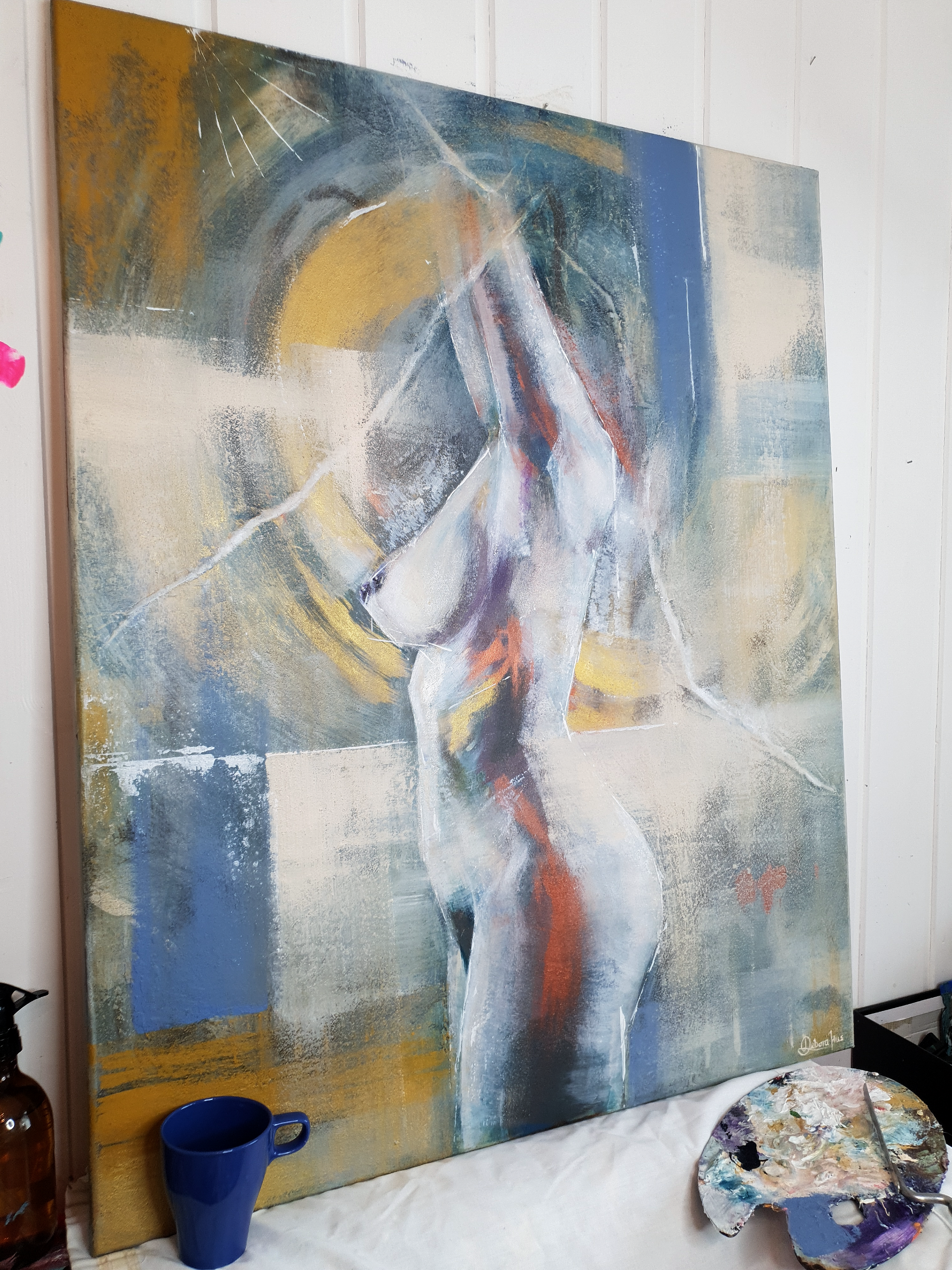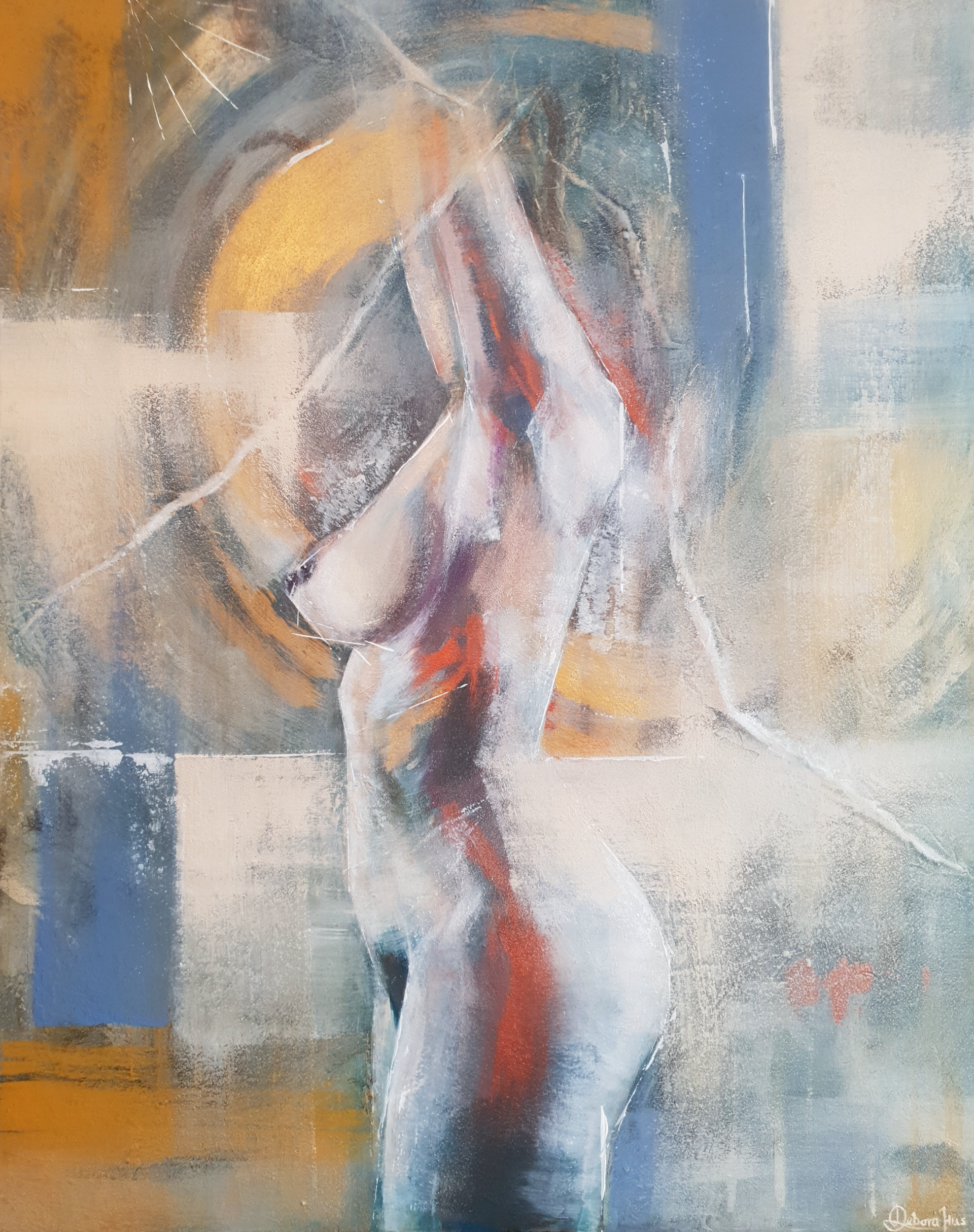 You can see a piece of nature incorporated into this picture. For this painting, I decided to add pigments I collected outside. It is quite inspiring to me to go outdoors to search for various organic elements I can utilize when painting. Anything from beach sand to woodland dirt to seashells can be used as materials. This work of art was created on canvas using a variety of media, including acrylic paint and pigments made from sand, shells and soil.