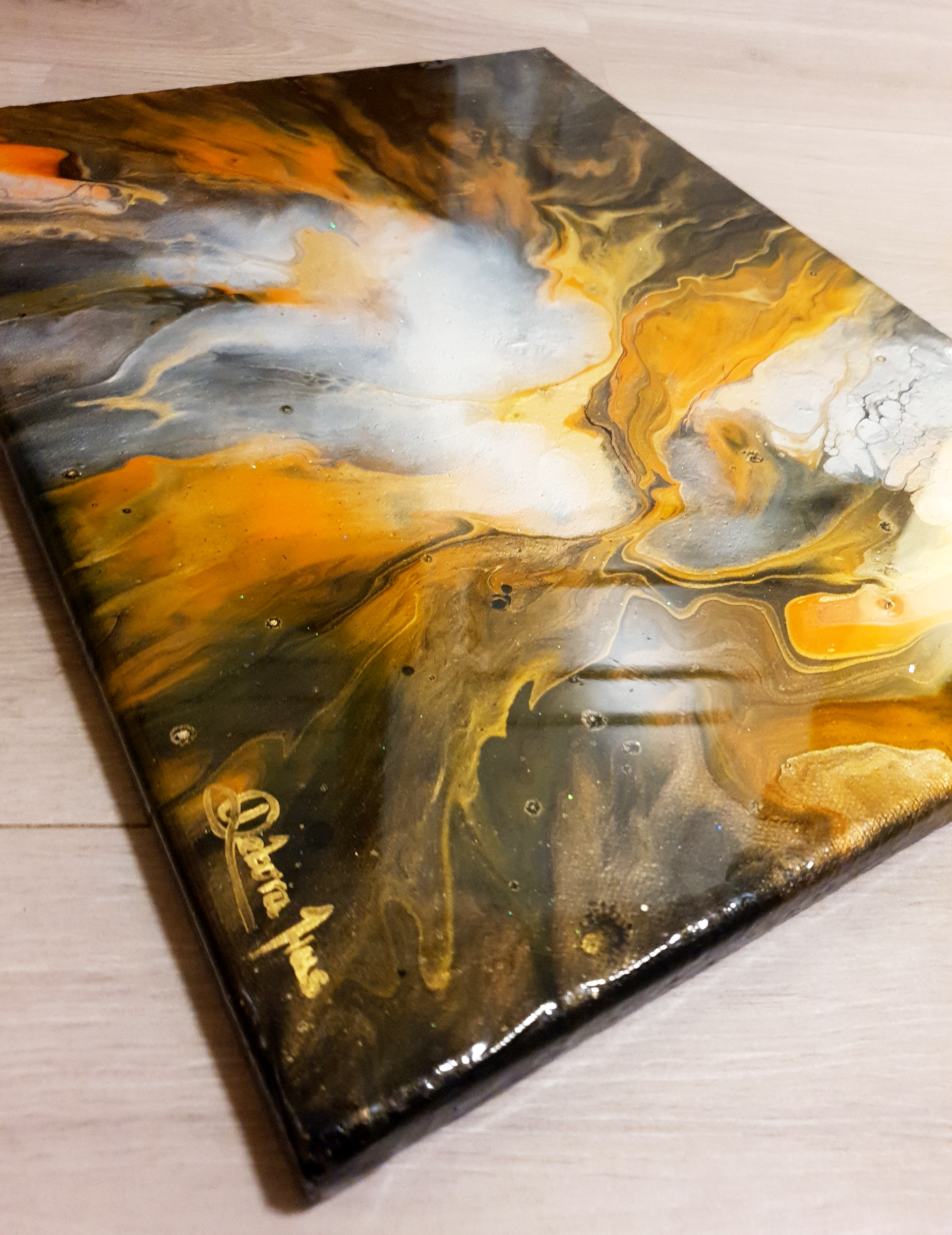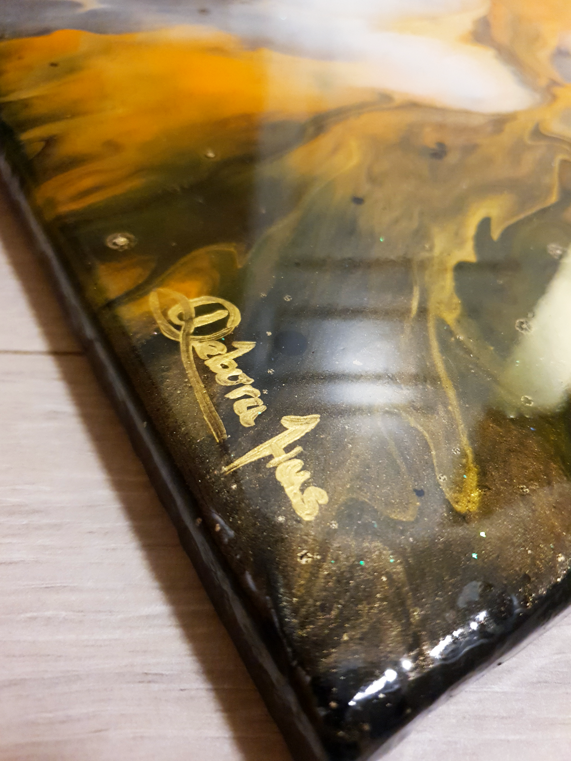 It has a layer of epoxy resin that has a similar effect to glass that gives a shiny effect.