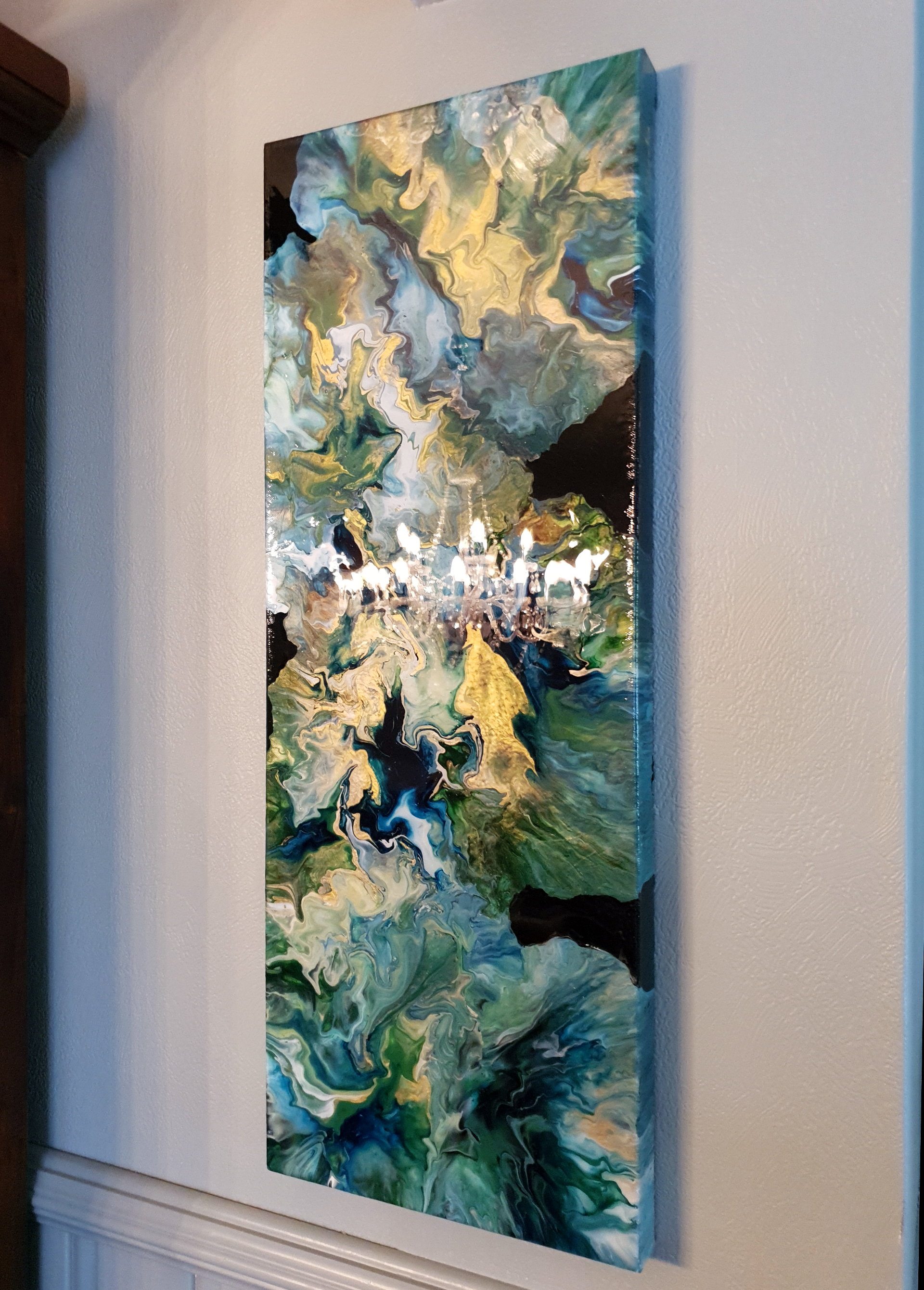 It has a layer of epoxy resin that has a similar effect to glass that gives a shiny effect.