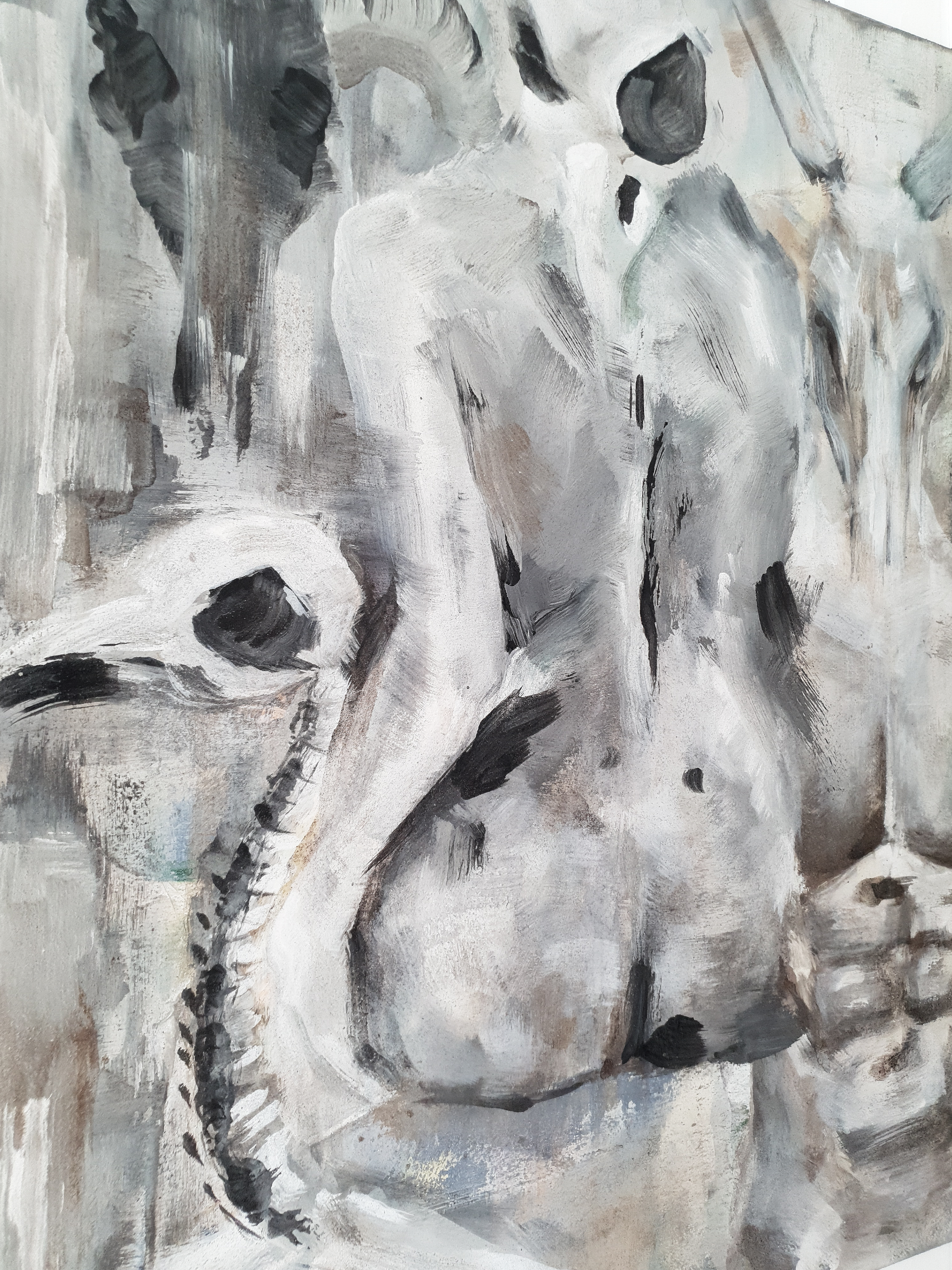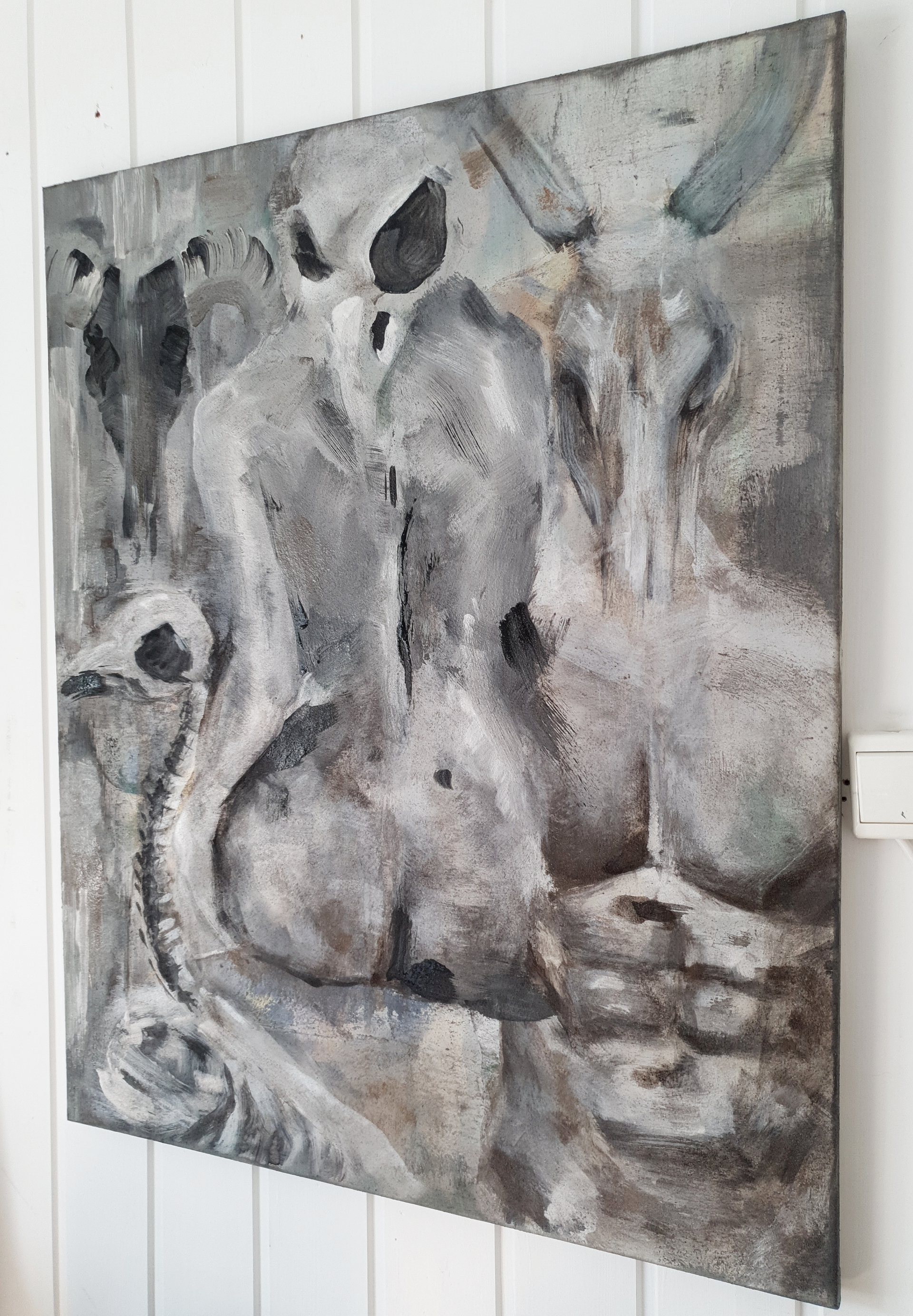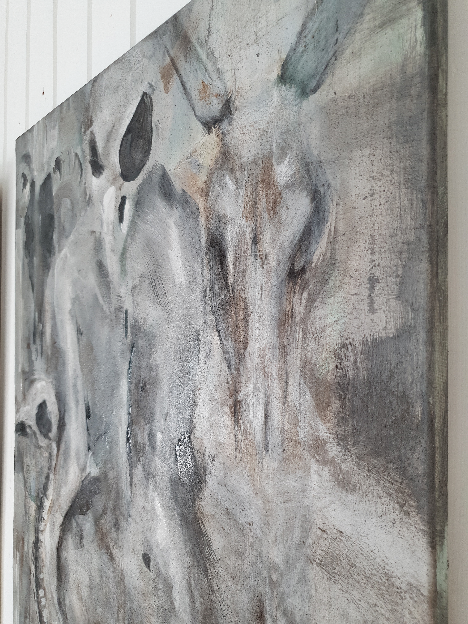 You can see a piece of nature incorporated into this picture. For this painting, I decided to add pigments I collected outside. It is quite inspiring to me to go outdoors to search for various organic elements I can utilize when painting. Anything from beach sand to woodland dirt to seashells can be used as materials. This work of art was created on canvas using a variety of media, including acrylic paint and pigments made from sand, shells and soil. It is sprayed with gloss varnish spray for shine and protection.