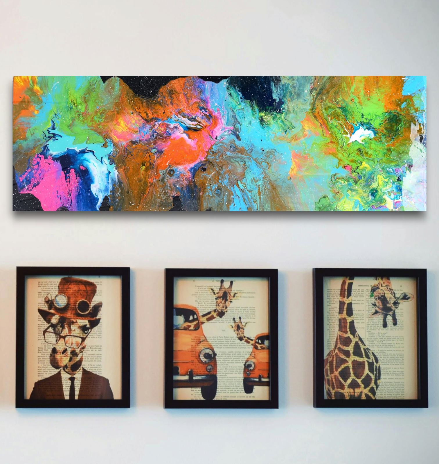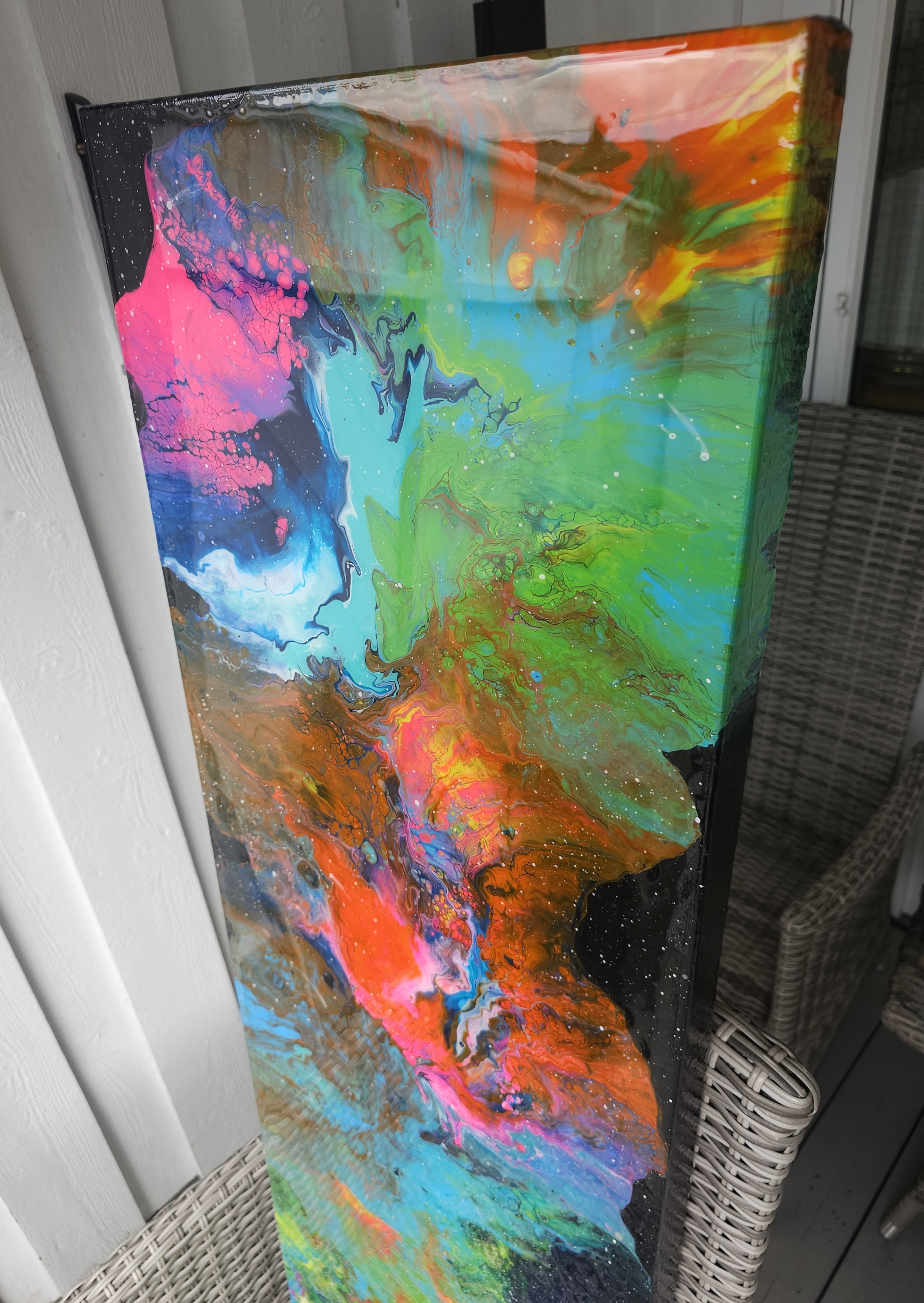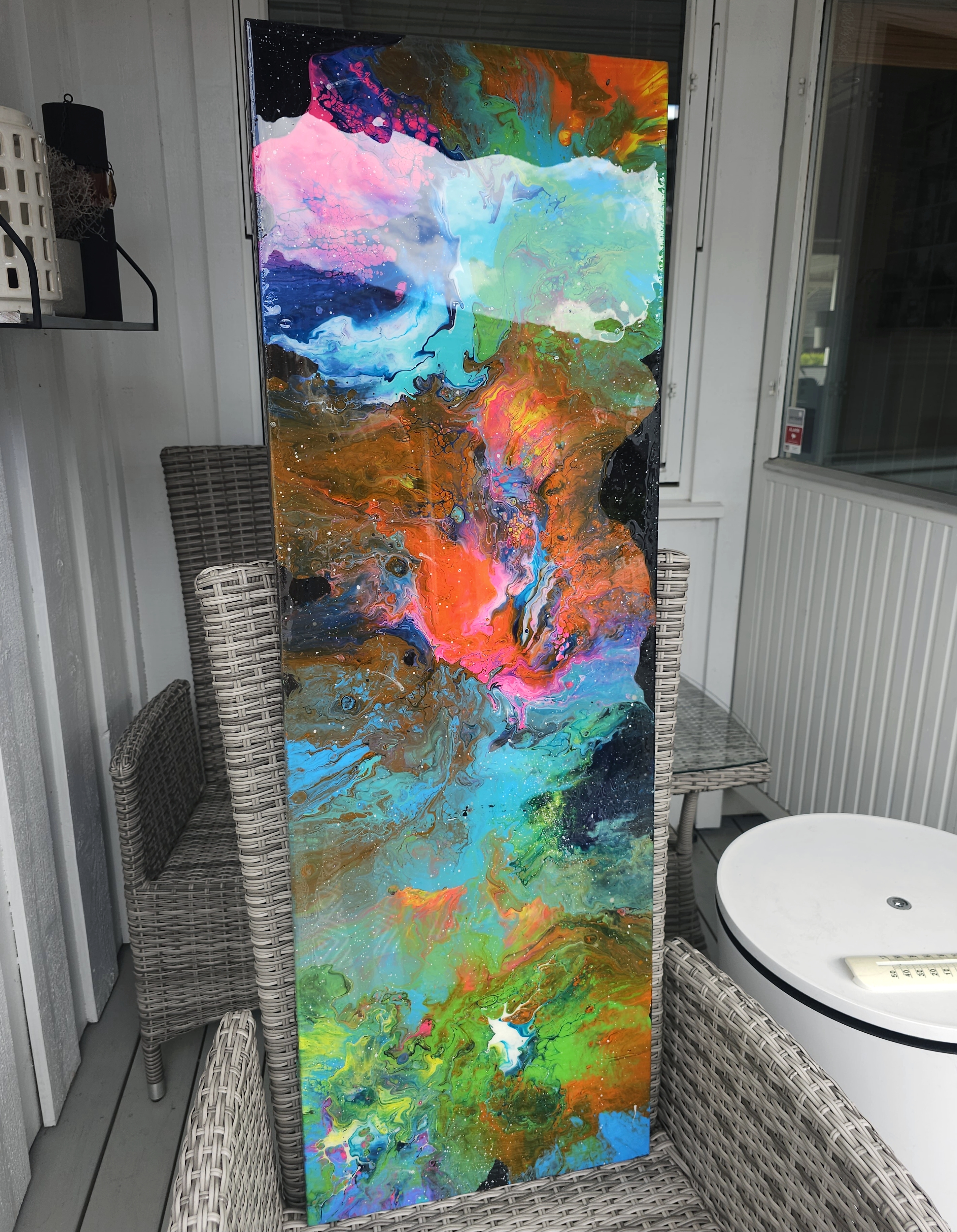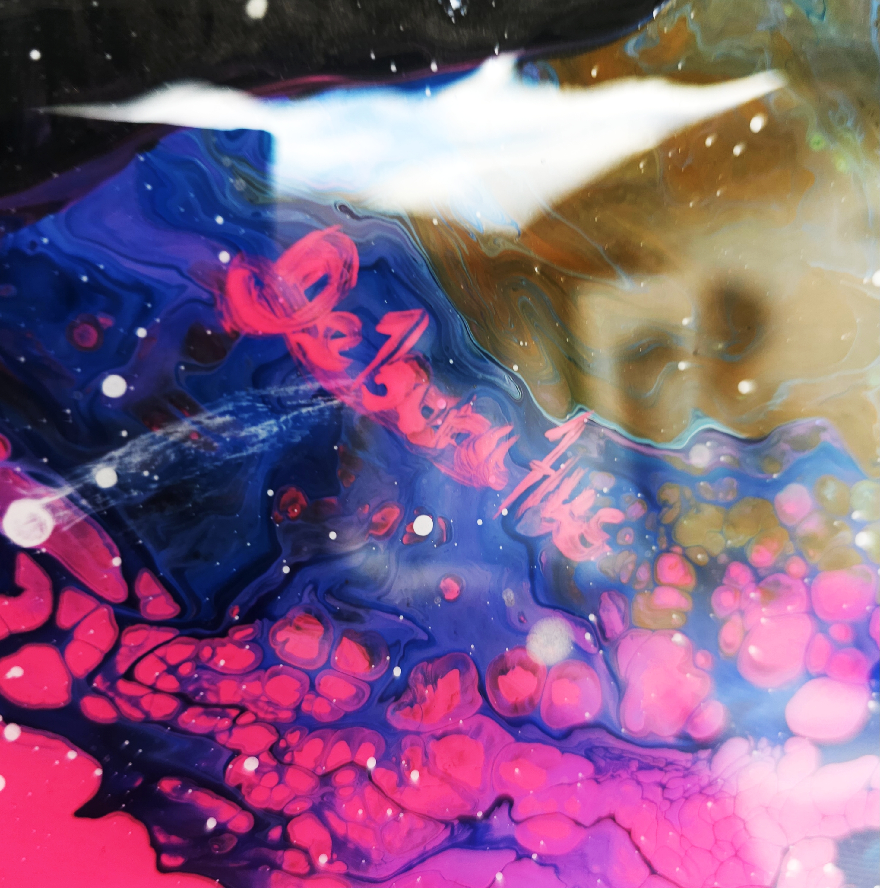 It has a layer of epoxy resin that gives the painting a glass-like and glossy appearance.