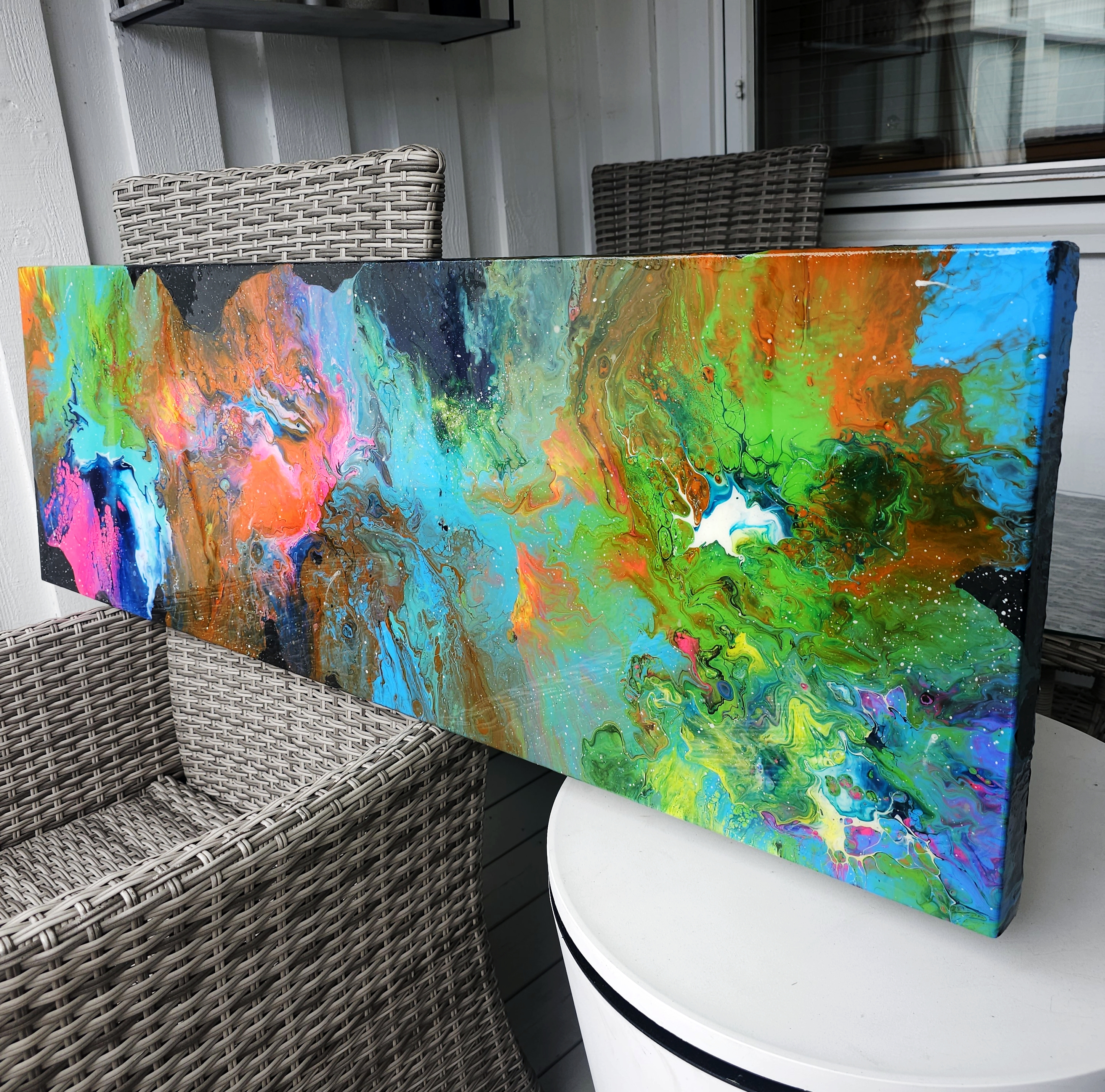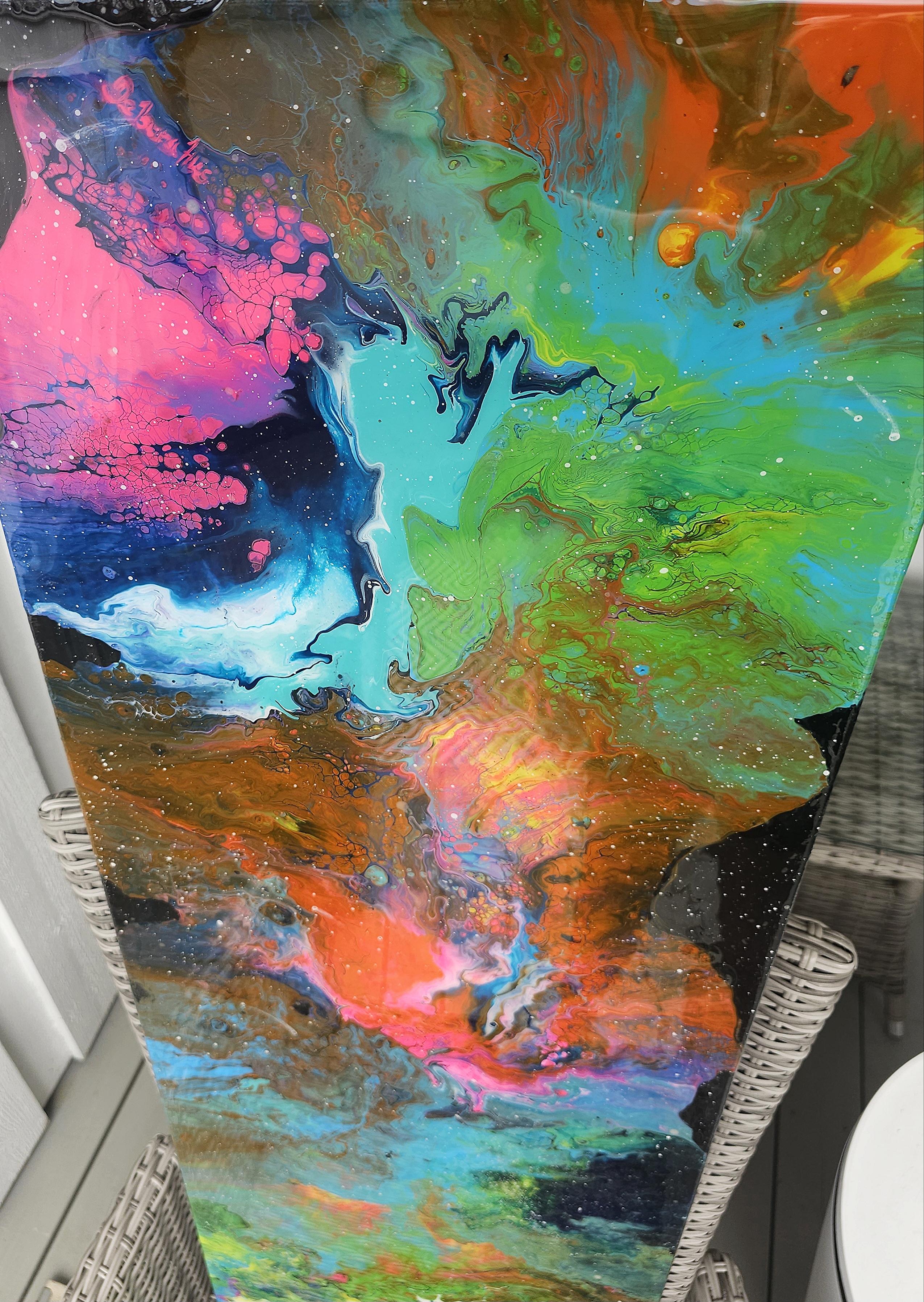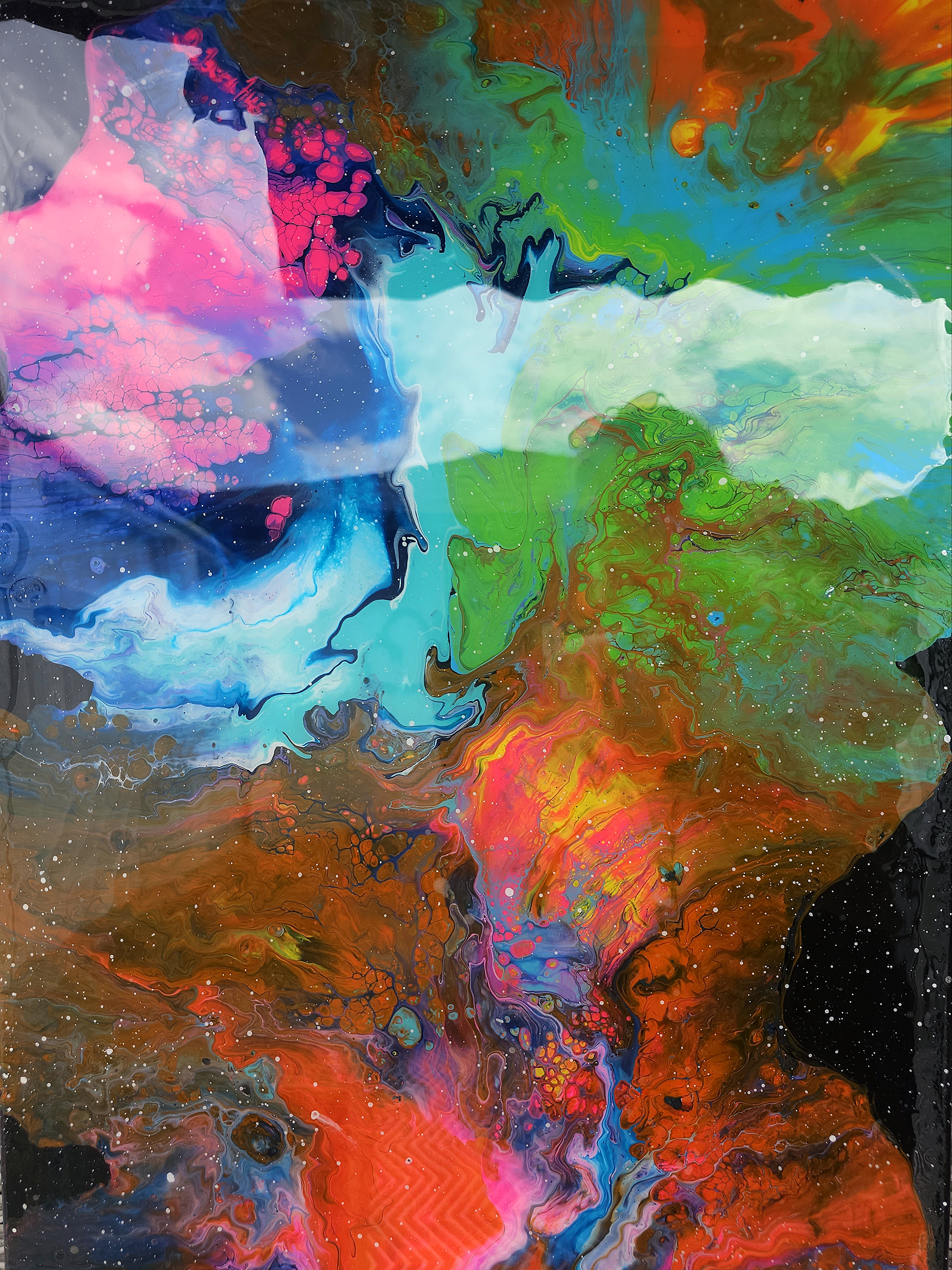 It has a layer of epoxy resin that gives the painting a glass-like and glossy appearance.