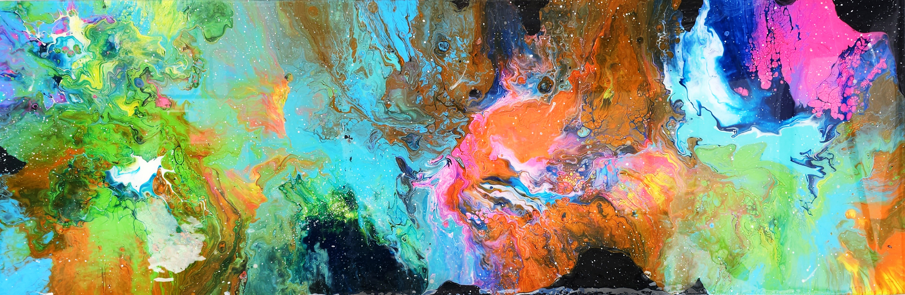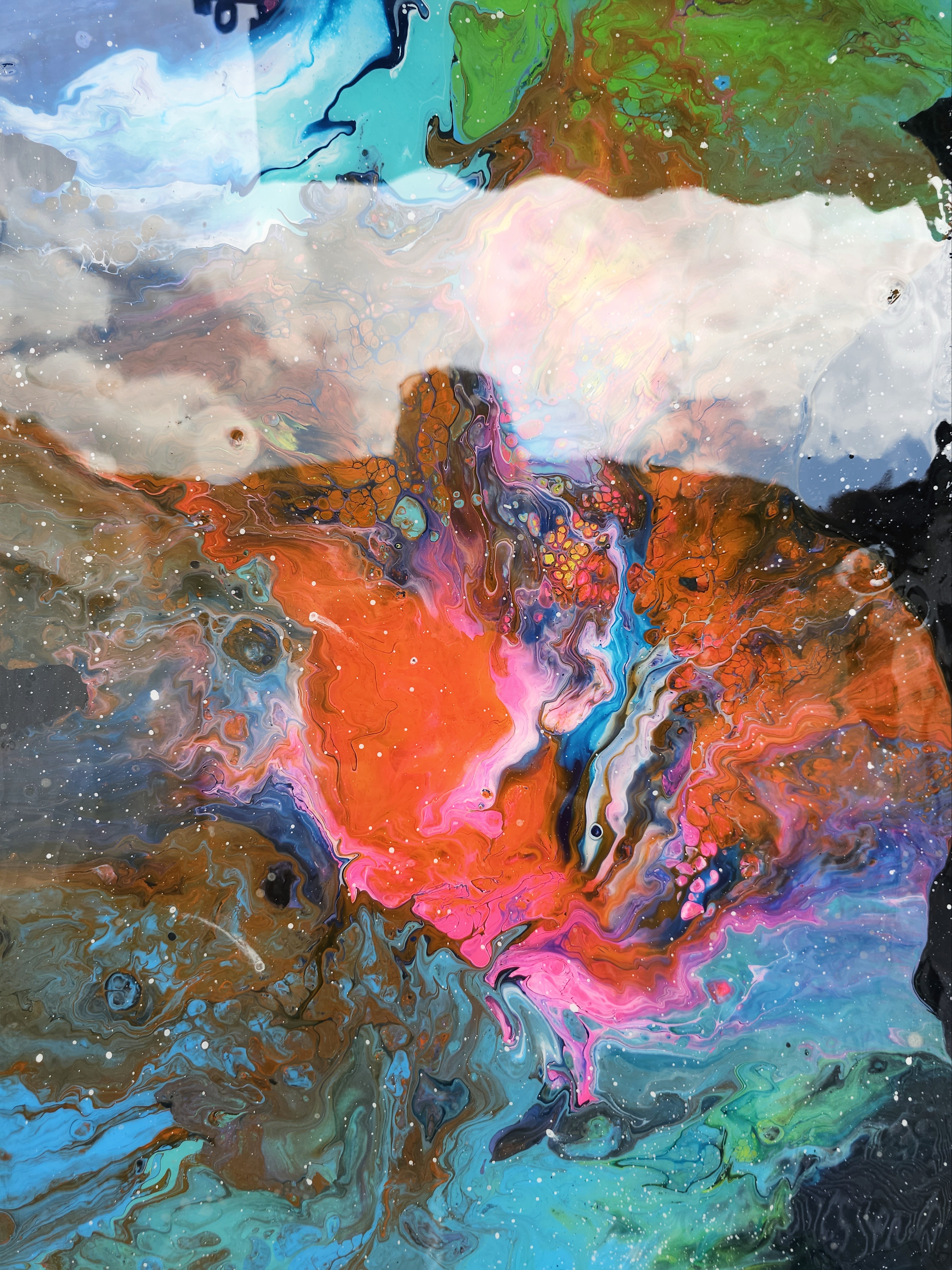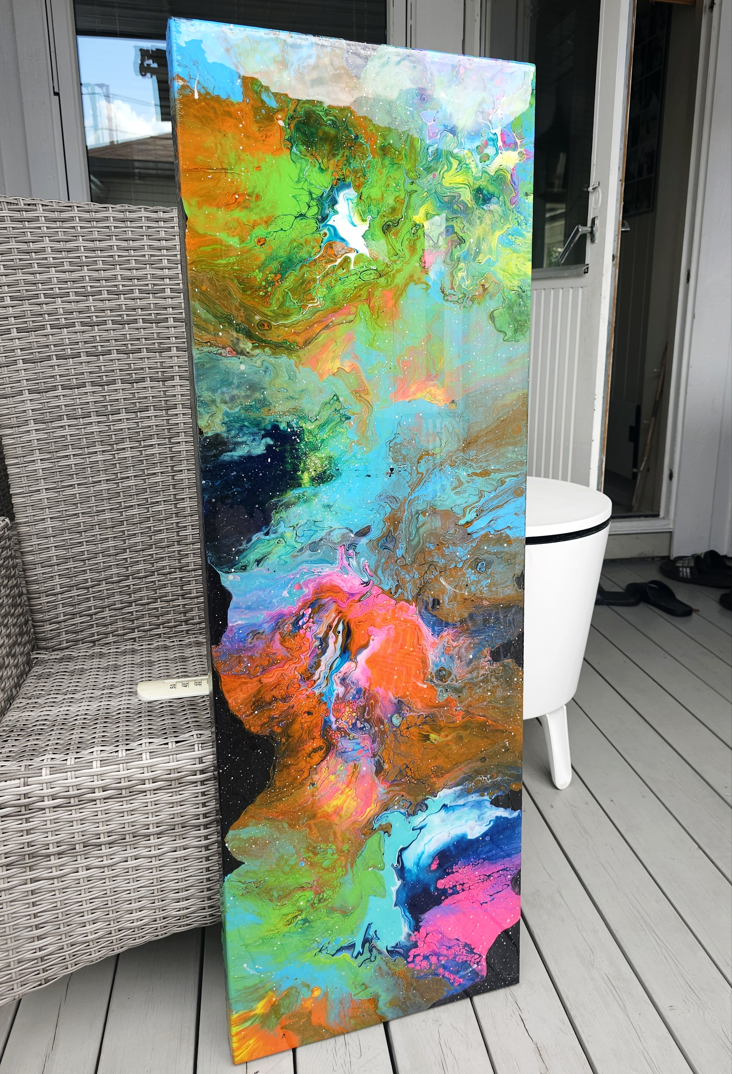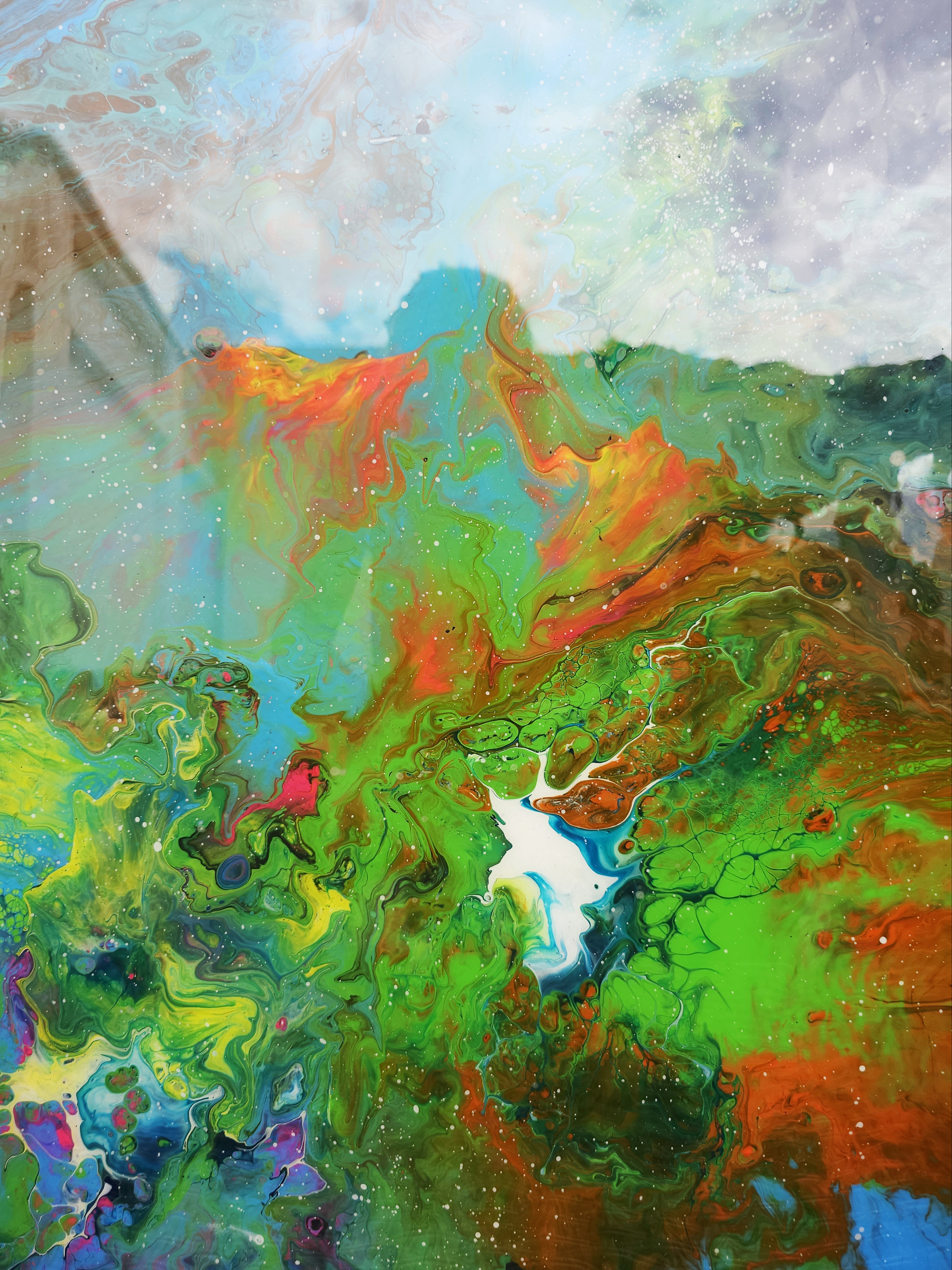 It has a layer of epoxy resin that gives the painting a glass-like and glossy appearance.